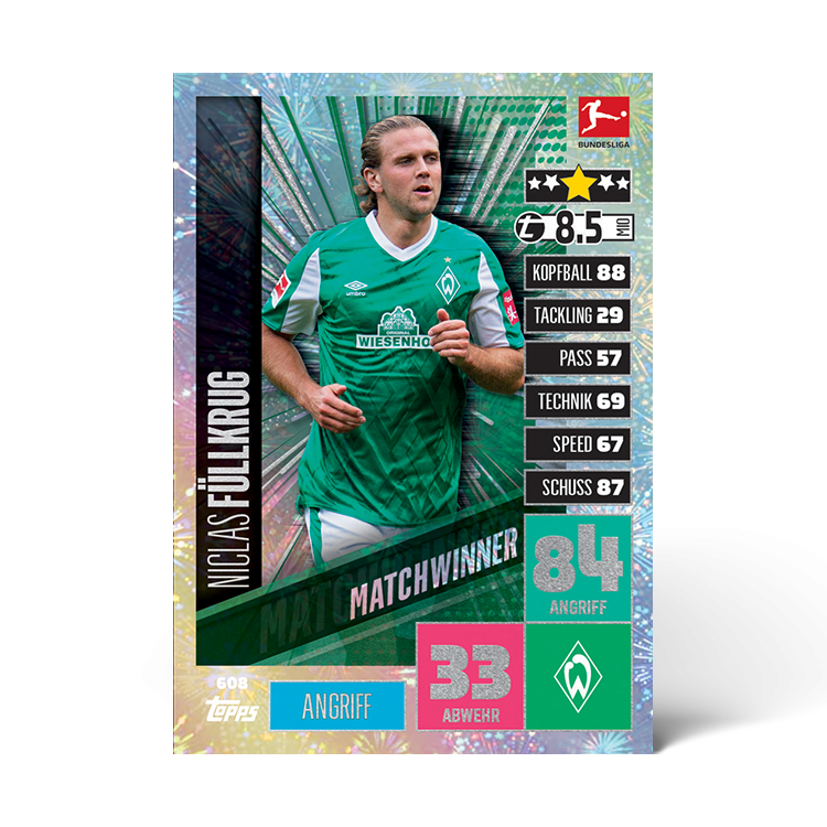 577. Benedikt Gimber (SSV Jahn Regensburg) 578. Sebastian Nachreiner (SSV Jahn Regensburg) 579. Andreas Albers (SSV Jahn Regensburg) 580. Diego Contento (SV Sandhausen) 581. Alexander Esswein (SV Sandhausen) 582. Daniel Keita-Ruel (SV Sandhausen) 583. Daniel Hägele (Würzburger Kickers) 584. Arne Feick (Würzburger Kickers) 585. Florian Flecker (Würzburger Kickers) MATCHWINNER 586. Jan Hochscheidt (FC Erzgebirge Aue) 587. Anthony Losilla (VfL Bochum) 588. Marcel Bär (Eintracht Braunschweig) 589. Serdar Dursun (Darmstadt 98) 590. Matthias Zimmermann (Fortuna Düsseldorf) 591. Mergim Mavraj (SpVgg Greuther Fürth) 592. Simon Terode (Hamburger SV) 593. Genki Haraguchi (Hannover 96) 594. Marc Schnatterer (1.FC Heidenheim) 595. Jerome Gondorf (Karlsruher SC) 596. Hauke Wahl (Holstein Kiel) 597. Johannes Geis (1.FC Nürnberg) 598. Etienne Amenyido (VfL Osnabrück) 599. Christopher Antwi-Adjei (SC Paderborn) 600. Marvin Knoll (FC St. Pauli) 601. Max Besuschkow (SSV Jahn Regensburg) 602. Dennis Diekmeier (SV Sandhausen) 603. Fabian Giefer (Würzburger Kickers) 604. Rani Khedira (FC Augsburg) 605. Lucas Tousart (Hertha BSC) 606. Robin Knoche (1.FC Union Berlin) 607. Stefan Ortega Moreno (DSC Arminia Bielefeld) 608. Niclas Füllkrug (SV Werder Bremen) 609. Axel Witsel (Borussia Dortmund) 610. Daichi Kamada (Eintracht Frankfurt) 611. Dominique Heintz (Sport-Club Freiburg) 612. Andrej Kramaric (TSG 1899 Hoffenheim) - 100 Club 613. Sebastian Andersson (1.FC Köln) 614. Yussuf Poulsen (RB Leipzig) 615. Jonathan Tah (Bayer 04 Leverkusen) 616. Moussa Niakhate (1.FSV Mainz 05) 617. Matthias Ginter (Borussia Mönchengladbach) - 100 Club 618. Benjamin Pavard (FC Bayern München) 619. Matija Nastasic (FC Schalke 04) 620. Gregor Kobel (VfB Stuttgart) 621. Renato Steffen (VfL Wolfsburg)