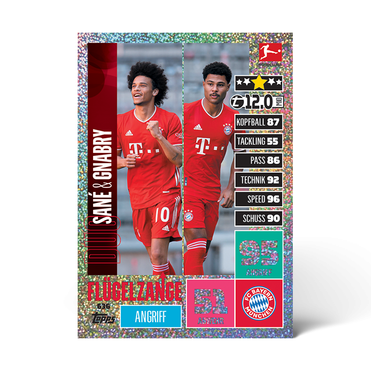 FLUGELZANGE 622. Vargas & Caligiuri (FC Augsburg) 623. Dirosun & Lukebakio (Hertha BSC) 624. Bülter & Becker (1.FC Union Berlin) 625. Edmundsson & Soukou (DSC Arminia Bielefeld) 626. Rashica & Chong (SV Werder Bremen) 627. Sancho & Hazard (Borussia Dortmund) 628. Kostic & Toure (Eintracht Frankfurt) 629. Schmid & Günter (Sport-Club Freiburg) 630. Kaderabek & Skov (TSG 1899 Hoffenheim) 631. Kainz & Drexler (1.FC Köln) 632. Angeliño & Mukiele (RB Leipzig) 633. Diaby & Bellarabi (Bayer 04 Leverkusen) 634. Quaison & Onisiwo (1.FSV Mainz 05) 635. Hofmann & Thuram (Borussia Mönchengladbach) 636. Sane & Gnabry (FC Bayern München) 637. Schöpf & Matondo (FC Schalke 04) 638. Didavi & Wamangituka (VfB Stuttgart) 639. Brekalo & Mehmedi (VfL Wolfsburg)