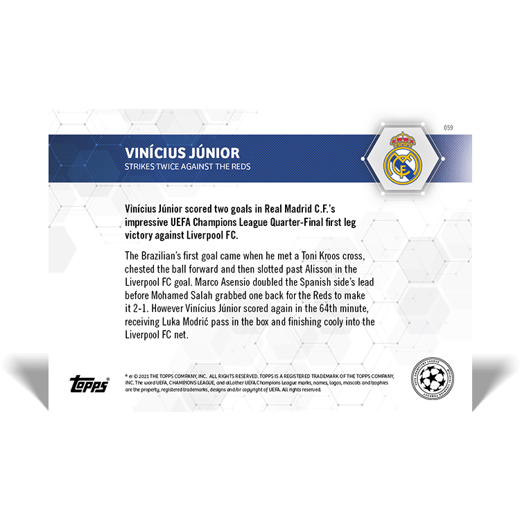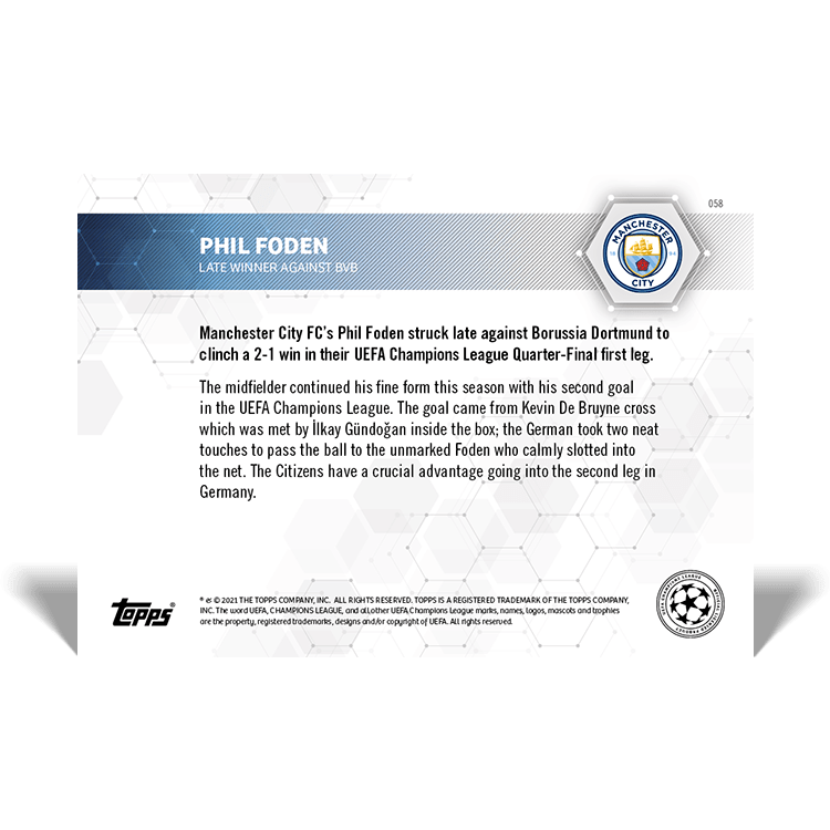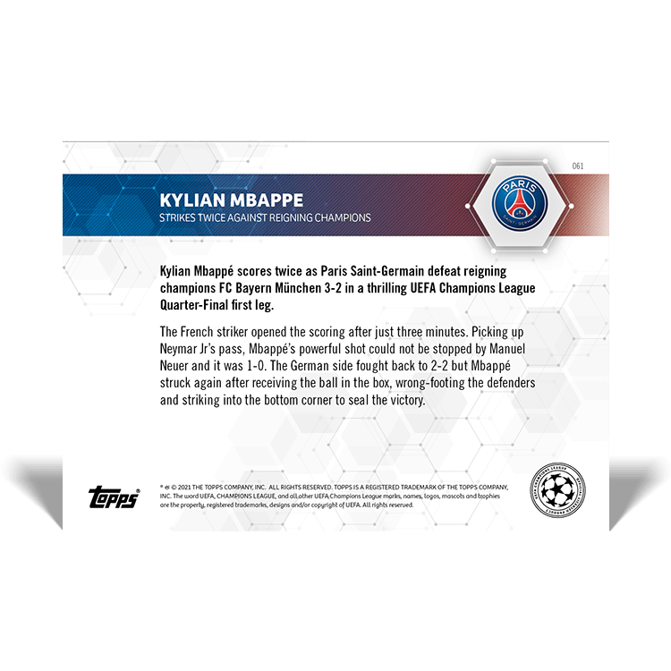 TOPPS NOW « UEFA CHAMPIONS LEAGUE 2020/21 » : visuel des cartes 057 à 061 (quarts de finale aller des 06 et 07/04) Thierry K.12/04/202127/04/2021ACTUALITÉS, DÉCOUVERTE, EDITION LIMITÉE Navigation des articles PrécédentSuivant Partager : Imprimer(ouvre dans une nouvelle fenêtre) Imprimer Envoyer un lien par e-mail à un ami(ouvre dans une nouvelle fenêtre) E-mail Partager sur Facebook(ouvre dans une nouvelle fenêtre) Facebook Partager sur X(ouvre dans une nouvelle fenêtre) X J’aime chargement… Articles similaires