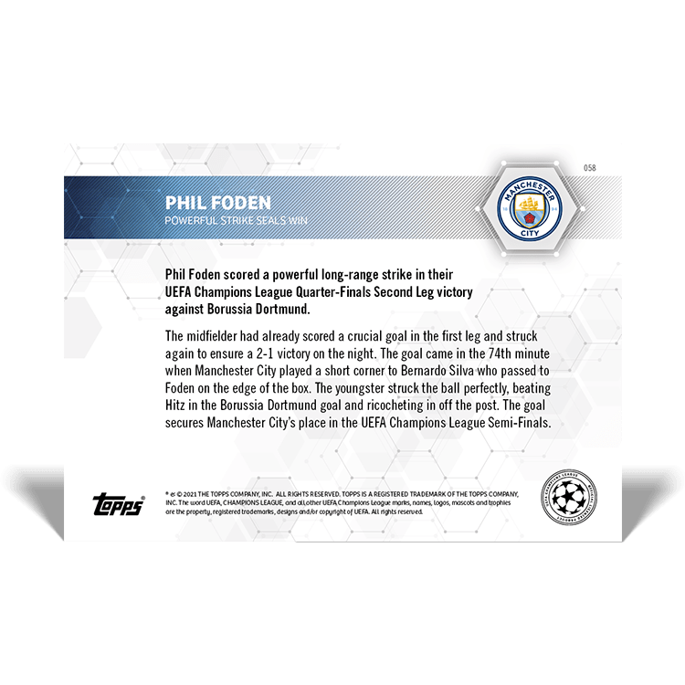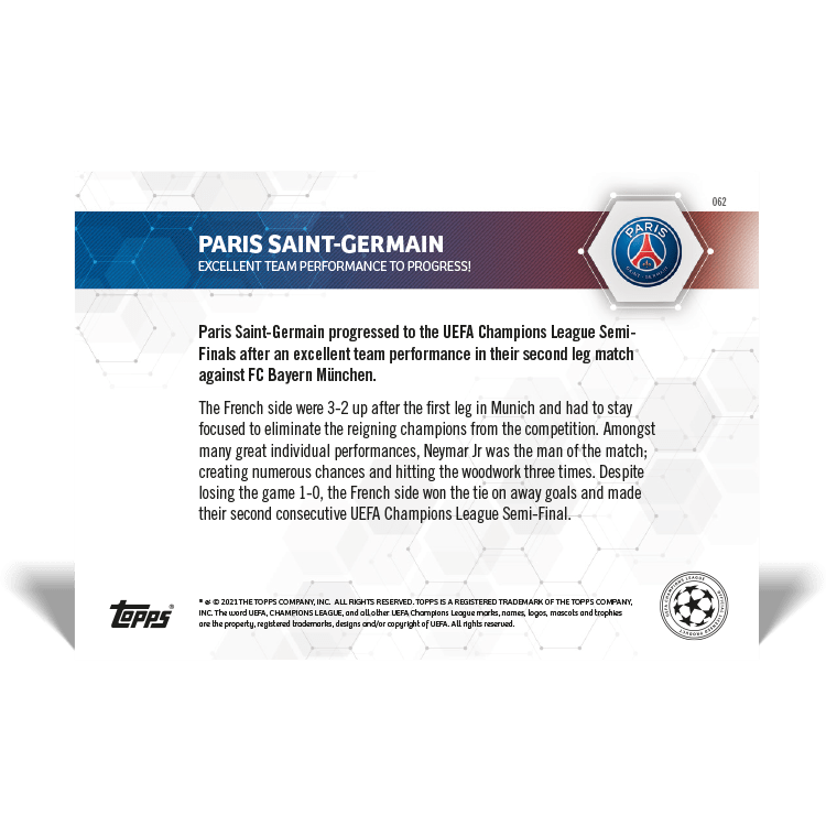 TOPPS NOW « UEFA CHAMPIONS LEAGUE 2020/21 » : visuel des cartes 062 à 065 (quarts de finale retour des 13 et 14/04) Thierry K.16/04/202127/04/2021ACTUALITÉS, DÉCOUVERTE, EDITION LIMITÉE Navigation des articles PrécédentSuivant Partager : Cliquer pour imprimer(ouvre dans une nouvelle fenêtre) Imprimer Cliquer pour envoyer un lien par e-mail à un ami(ouvre dans une nouvelle fenêtre) E-mail Cliquez pour partager sur Facebook(ouvre dans une nouvelle fenêtre) Facebook Cliquer pour partager sur X(ouvre dans une nouvelle fenêtre) X J’aime chargement… Articles similaires
