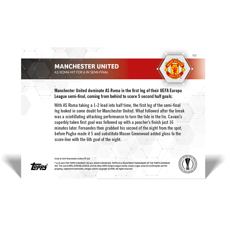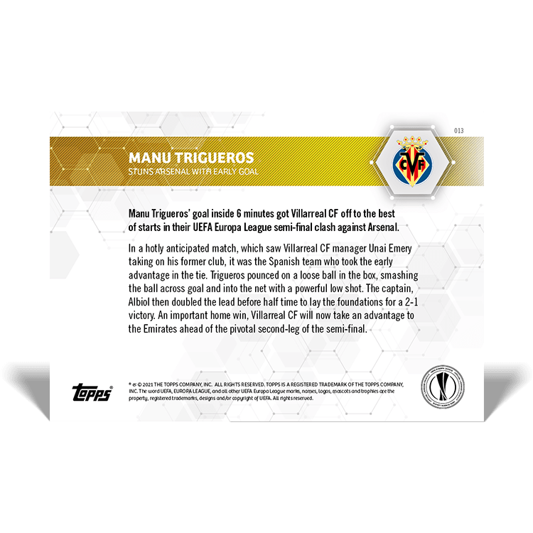 TOPPS NOW « UEFA EUROPA LEAGUE 2020/21 » : visuel des cartes 012 à 013 (demi-finales aller du 29/04) Thierry K.05/05/202105/05/2021ACTUALITÉS, DÉCOUVERTE, EDITION LIMITÉE Navigation des articles PrécédentSuivant Partager : Imprimer(ouvre dans une nouvelle fenêtre) Imprimer Envoyer un lien par e-mail à un ami(ouvre dans une nouvelle fenêtre) E-mail Partager sur Facebook(ouvre dans une nouvelle fenêtre) Facebook Partager sur X(ouvre dans une nouvelle fenêtre) X J’aime chargement… Articles similaires