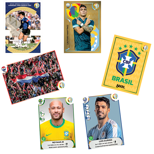 LA CHECK-LIST Intro01. Copa América logo Intro02. Balón Intro03. Ciudades Sedes SEDES Y ESTADIOS C01. Córdoba C02. Estadio Mario Alberto Kempes 1/2 C03. Estadio Mario Alberto Kempes 2/2 C04. Estadio Malvinas Argentina 1/2 C05. Estadio Malvinas Argentina 2/2 C06. Mendoza C07. Buenos Aires C08. Estadio Antonio Vespucio 1/2 C09. Estadio Antonio Vespucio 2/2 C10. Estadio Único 1/2 C11. Estadio Único 2/2 C12. Santiago de Estero C13. Bogotá C14. Estadio El Campín 1/2 C15. Estadio El Campín 2/2 C16. Cali C17. Estadio Olímpico Pascual Guerrero 1/2 C18. Estadio Olímpico Pascual Guerrero 2/2 C19. EStadio Atanasio Girardo 1/2 C20. Estadio Atanasio Girardo 2/2 C21. Medellín C22. Barranquilla C23. Estadio Metropolitano Roberto Meléndez 1/2 C24. Estadio Metropolitano Roberto Meléndez 2/2 GRUPO A ARG01. Emblem (Argentina) - Holograph ARG02. Team 1/2 (Argentina) ARG03. Team 2/2 (Argentina) ARG04. Franco Armani (Argentina) ARG05. Esteban Andrada (Argentina) ARG06. Lucas Martínez Quarta (Argentina) ARG07. Juan Foyth (Argentina) ARG08. Gonzalo Montirl (Argentina) ARG09. Nicolás Otamendi (Argentina) ARG10. Nicolás Tagliafico (Argentina) ARG11. Leandro Paredes (Argentina) ARG12. Exequiel Palacios (Argentina) ARG13. Giovani Lo Celso (Argentina) ARG14. Rodrigo de Paul (Argentina) ARG15. Ángel di Maria (Argentina) ARG16. Lautaro Martínez (Argentina) - Holograph ARG17. Luca Ocampos (Argentina) ARG18. Nicolás González (Argentina) ARG19. Joaquín Correa (Argentina) ARG20. Lionel Messi (Argentina) ARG21. Sergio Agüero (Argentina) ARG22. Lucas Alario (Argentina) ARG23. Paulo Dybala (Argentina) ARG24. Lautaro Martínez (Argentina) ARG25. Primera Equipación (Argentina) ARG26. Segunda Equipación (Argentina) ARG27. Hinchada (Argentina) ARG28. Celebración (Argentina) ARG29. Identidad (Argentina) BOL01. Emblem (Bolivia) - Holograph BOL02. Team 1/2 (Bolivia) BOL03. Team 2/2 (Bolivia) BOL04. Javier Rojas Iguaro (Bolivia) BOL05. Carlos Lampe (Bolivia) BOL06. Adrían Jusino (Bolivia) BOL07. José Sagredo (Bolivia) BOL08. Diego Bejarano (Bolivia) BOL09. Gabriel Valverde (Bolivia) BOL10. Óscar Ribera (Bolivia) BOL11. Roberto Fernández (Bolivia) BOL12. Diego Wayar (Bolivia) BOL13. ERwin Saavedra (Bolivia) BOL14. Leonel Justiniano (Bolivia) BOL15. Rudy Cardozo (Bolivia) BOL16. Alejandro Chumacero (Bolivia) - Holograph BOL17. Moisés Villarroel (Bolivia) BOL18. Alejandro Chumacero (Bolivia) BOL19. Boris Céspedes (Bolivia) BOL20. Henry Vaca (Bolivia) BOL21. Juan Carlos Arce (Bolivia) BOL22. Víctor Ábrego (Bolivia) BOL23. Gilbert Álvarez (Bolivia) BOL24. Marcelo Moreno (Bolivia) BOL25. Primera Equipación (Bolivia) BOL26. Segunda Equipación (Bolivia) BOL27. Hinchada (Bolivia) BOL28. Celebración (Bolivia) BOL29. Identidad (Bolivia) URU01. Emblem (Uruguay) - Holograph URU02. Team 1/2 (Uruguay) URU03. Team 2/2 (Uruguay) URU04. Fernando Muslera (Uruguay) URU05. Martín Campaña (Uruguay) URU06. Diego Godín (Uruguay) URU07. Martín Cáceres (Uruguay) URU08. José Giménez (Uruguay) URU09. Sebastián Coates (Uruguay) URU10. Matías Viña (Uruguay) URU11. Ronald Araujo (Uruguay) URU12. Nahitan Nandez (Uruguay) URU13. Lucas Torreira (Uruguay) URU14. Federico Valverde (Uruguay) URU15. Rodrigo Betancur (Uruguay) URU16. Diego Godín (Uruguay) - Holograph URU17. Nicolás de la Cruz (Uruguay) URU18. Georgian de Arrascaeta (Uruguay) URU19. Jonathan Rodríguez (Uruguay) URU20. Luis Suárez (Uruguay) URU21. Brian Rodríguez (Uruguay) URU22. Maxi Gómez (Uruguay) URU23. Darwin Núñez (Uruguay) URU24. Edinso Cavani (Uruguay) URU25. Primera Equipación (Uruguay) URU26. Segunda Equipación (Uruguay) URU27. Hinchada (Uruguay) URU28. Celebración (Uruguay) URU29. Identidad (Uruguay) CHI01. Emblem (Chile) - Holograph CHI02. Team 1/2 (Chile) CHI03. Team 2/2 (Chile) CHI04. Brayan Cortés (Chile) CHI05. Claudio Bravo (Chile) CHI06. Gary Medel (Chile) CHI07. Mauricio Isla (Chile) CHI08. Paulo Díaz (Chile) CHI09. Guillermo Maripán (Chile) CHI10. Francisco Sierralta (Chile) CHI11. Sebastián Vegas (Chile) CHI12. Nicolás Díaz (Chile) CHI13. Jean Beausejour (Chile) CHI14. Charles Aránguiz (Chile) CHI15. Arturo Vidal (Chile) CHI16. Arturo Vidal (Chile) - Holograph CHI17. Erick Pulgar (Chile) CHI18. Claudio Baeza (Chile) CHI19. César Pinares (Chile) CHI20. Jean Meneses (Chile) CHI21. Alexis Sánchez (Chile) CHI22. Fabián Orellana (Chile) CHI23. Felipe Mora (Chile) CHI24. Eduardo Vargas (Chile) CHI25. Primera Equipación (Chile) CHI26. Segunda Equipación (Chile) CHI27. Hinchada (Chile) CHI28. Celebración (Chile) CHI29. Identidad (Chile) PAR01. Emblem (Paraguay) - Holograph PAR02. Team 1/2 (Paraguay) PAR03. Team 2/2 (Paraguay) PAR04. Antony Silva (Paraguay) PAR05. Júnior Alonso (Paraguay) PAR06. Gustavo Gómez (Paraguay) PAR07. Robert Roja (Paraguay) PAR08. Omar Alderete (Paraguay) PAR09. Fabián Balbuena (Paraguay) PAR10. Ángel Cardozo Lucena (Paraguay) PAR11. Andrés Cuba (Paraguay) PAR12. Ricard Sánchez (Paraguay) PAR13. Mathias Villasanti (Paraguay) PAR14. Gastób Giménez (Paraguay) PAR15. Matias Rojas (Paraguay) PAR16. Miguel Almirón (Paraguay) - Holograph PAR17. Alejandro Romero Gamarra (Paraguay) PAR18. Miguel Almirón (Paraguay) PAR19. Óscar Romero (Paraguay) PAR20. Hernán Pérez (Paraguay) PAR21. Antonio Sanabria (Paraguay) PAR22. Ángel Romero (Paraguay) PAR23. Darío Lezcano (Paraguay) PAR24. Braian Samudio (Paraguay) PAR25. Primera Equipación (Paraguay) PAR26. Segunda Equipación (Paraguay) PAR27. Hinchada (Paraguay) PAR28. Celebración (Paraguay) PAR29. Identidad (Paraguay) GRUPO B COL01. Emblem (Colombia) - Holograph COL02. Team 1/2 (Colombia) COL03. Team 2/2 (Colombia) COL04. David Ospina (Colombia) COL05. Álvaro Montero (Colombia) COL06. Santiago Ariaas (Colombia) COL07. Stefan Medina (Colombia) COL08. Dávinson Sánchez (Colombia) COL09. Yerry Mina (Colombia) COL10. Jeison Murillo (Colombia) COL11. William Tesillo (Colombia) COL12. Johan Mojica (Colombia) COL13. Wílmar Barrios (Colombia) COL14. Mat