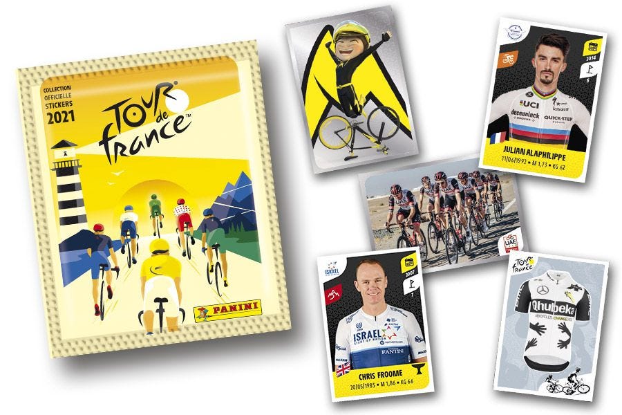 LA CHECK-LIST 1 Maxoo La Mascotte du Tour 2 Maxoo La Mascotte du Tour 3 Landerneau Etape 1 4 Souvenir Etape 1 5 Cote de Granit (Perros-Guirec) Etape 2 6 Souvenir Etape 2 7 Pontivy Etape 3 8 Souvenir Etape 3 9 Abbaye de Saint-Sauveur (Redon) Etape 4 10 Souvenir Etape 4 11 Vieux-Château (Laval) Etape 5 12 Souvenir Etape 5 13 Pont Wilson (Tours) Etape 6 14 Souvenir Etape 6 15 Vierzon Etape 7 16 Souvenir Etape 7 17 Oyonnax Etape 8 18 Souvenir Etape 8 19 Tignes Etape 9 20 Souvenir Etape 9 21 Jardin de la Tour Sarrasine (Albertville) Etape 10 22 Souvenir Etape 10 23 Sorgues Etape 11 24 Souvenir Etape 11 25 Rue ancienne du centre-ville (Saint-Paul-Trois-Châteaux) Etape 12 26 Souvenir Etape 12 27 Nîmes Etape 13 28 Souvenir Etape 13 29 Carcassonne Etape 14 30 Souvenir Etape 14 31 "La Noblesse du temps" sculpture de Salvador Dali (Andorre-la-Vieille) Etape 15 32 Souvenir Etape 15 33 Collégiale Saint-Pierre et Saint-Gaudens Etape 16 34 Souvenir Etape 16 35 Parc Clément Ader (Muret) Etape 17 36 Souvenir Etape 17 37 Montée de Luz Ardiden Etape 18 38 Souvenir Etape 18 39 Pont de pierre sur la Dordogne (Libourne) Etape 19 40 Souvenir Etape 19 41 Hôtel de ville (Libourne) Etape 20 42 Souvenir Etape 20 43 Pyramide du Louvre (Paris) Etape 21 44 Souvenir Etape 21 45 Logo AG2R Citroën Team 46 Maillot AG2R Citroën Team 47 Benoit Cosnefroy AG2R Citroën Team 48 Bob Jungels AG2R Citroën Team 49 Oliver Naesen AG2R Citroën Team 50 Aurélien Paret-Peintre AG2R Citroën Team 51 Nans Peters AG2R Citroën Team 52 Bicyclette AG2R Citroën Team 53 Equipe AG2R Citroën Team 54 Marc Sarreau AG2R Citroën Team 55 Michael Schar AG2R Citroën Team 56 Greg Van Avermaet AG2R Citroën Team 57 Dorian Godon AG2R Citroën Team 58 Ben O'Connor AG2R Citroën Team 59 Logo Alpecin - Fenix 60 Maillot Alpecin - Fenix 61 Mathieu van der Poel Alpecin - Fenix 62 Jasper Philipsen Alpecin - Fenix 63 Dries de Bondt Alpecin - Fenix 64 Kristian Sbaragli Alpecin - Fenix 65 Petr Vakoc Alpecin - Fenix 66 Bicyclette Alpecin - Fenix 67 Equipe Alpecin - Fenix 68 Xandro Meurisse Alpecin - Fenix 69 Silvan Dillier Alpecin - Fenix 70 Jonas Rickaert Alpecin - Fenix 71 Otto Vergaerde Alpecin - Fenix 72 Tim Merlier Alpecin - Fenix 73 Logo Team Arkea - Samsic 74 Maillot Team Arkea - Samsic 75 Warren Barguil Team Arkea - Samsic 76 Nairo Quintana Team Arkea - Samsic 77 Nacer Bouhanni Team Arkea - Samsic 78 Daniel McLay Team Arkea - Samsic 79 Connor Swift Team Arkea - Samsic 80 Bicyclette Team Arkea - Samsic 81 Equipe Team Arkea - Samsic 82 Clement Russo Team Arkea - Samsic 83 Thomas Boudat Team Arkea - Samsic 84 Diego Rosa Team Arkea - Samsic 85 Maxime Bouet Team Arkea - Samsic 86 Elie Gesbert Team Arkea - Samsic 87 Logo Astana - Premier Tech 88 Maillot Astana - Premier Tech 89 Jakob Fuglsang Astana - Premier Tech 90 Alexey Lutsenko Astana - Premier Tech 91 Aleksandr Vlasov Astana - Premier Tech 92 Ion Izagirre Astana - Premier Tech 93 Luis Leon Sanchez Astana - Premier Tech 94 Bicyclette Astana - Premier Tech 95 Equipe Astana - Premier Tech 96 Alexander Aranburu Astana - Premier Tech 97 Stefan de Bod Astana - Premier Tech 98 Omar Fraile Astana - Premier Tech 99 Hugo Houle Astana - Premier Tech 100 Merhawi Kudus Astana - Premier Tech 101 Logo B&B Hotels p/b KTM 102 Maillot B&B Hotels p/b KTM 103 Bryan Coquard B&B Hotels p/b KTM 104 Cyril Barthe B&B Hotels p/b KTM 105 Maxime Chevalier B&B Hotels p/b KTM 106 Jens Debusschere B&B Hotels p/b KTM 107 Cyril Gautier B&B Hotels p/b KTM 108 Bicyclette B&B Hotels p/b KTM 109 Equipe B&B Hotels p/b KTM 110 Quentin Jauregui B&B Hotels p/b KTM 111 Cyril Lemoine B&B Hotels p/b KTM 112 Quentin Pacher B&B Hotels p/b KTM 113 Kevin Reza B&B Hotels p/b KTM 114 Pierre Rolland B&B Hotels p/b KTM 115 Logo Bahrain Victorious 116 Maillot Bahrain Victorious 117 Mikel Landa Bahrain Victorious 118 Yukiya Arashiro Bahrain Victorious 119 Pello Bilbao Bahrain Victorious 120 Damiano Caruso Bahrain Victorious 121 Sonny Colbrelli Bahrain Victorious 122 Bicyclette Bahrain Victorious 123 Equipe Bahrain Victorious 124 Jack Leonard Haig Bahrain Victorious 125 Matej Mohoric Bahrain Victorious 126 Wout Poels Bahrain Victorious 127 Dylan Teuns Bahrain Victorious 128 Jan Tratnik Bahrain Victorious 129 Logo BORA - hansgrohe 130 Maillot BORA - hansgrohe 131 Wilco Kelderman BORA - hansgrohe 132 Lennard Kamna BORA - hansgrohe 133 Patrick Konrad BORA - hansgrohe 134 Maximilian Schachmann BORA - hansgrohe 135 Peter Sagan BORA - hansgrohe 136 Bicyclette BORA - hansgrohe 137 Equipe BORA - hansgrohe 138 Pascal Ackermann BORA - hansgrohe 139 Rudiger Selig BORA - hansgrohe 140 Michael Schwarzmann BORA - hansgrohe 141 Nils Politt BORA - hansgrohe 142 Lukas Postlberger BORA - hansgrohe 143 Logo Cofidis 144 Maillot Cofidis 145 Guillaume Martin Cofidis 146 Nicolas Edet Cofidis 147 Simon Geschke Cofidis 148 Nathan Haas Cofidis 149 Jesus Herrada Cofidis 150 Bicyclette Cofidis 151 Equipe Cofidis 152 Christophe Laporte Cofidis 153 Anthony Perez Cofidis 154 Pierre-Luc Périchon Cofidis 155 Fabio Sabatini Cofidis 156 Elia Viviani Cofidis 157 Logo Deceuninck - Quick-Step 158 Maillot Deceuninck - Quick-Step 159 Julian Alaphilippe Deceuninck - Quick-Step 160 Sam Bennett Deceuninck - Quick-Step 161 Kasper Asgreen Deceuninck - Quick-Step 162 Mattia Cattaneo Deceuninck - Quick-Step 163 Davide Ballerini Deceuninck - Quick-Step 164 Bicyclette Deceuninck - Quick-Step 165 Equipe Deceuninck - Quick-Step 166 Tim Declercq Deceuninck - Quick-Step 167 Dries Devenyns Deceuninck - Quick-Step 168 Michael Morkov Deceuninck - Quick-Step 169 Joao Almeida Deceuninck - Quick-Step 170 Yves Lampaert Deceuninck - Quick-Step 171 Logo EF Education - Nippo 172 Maillot EF Education - Nippo 173 Alberto Bettiol EF Education - Nippo 174 Stefan Bissegger EF Education - Nippo 175 Ruben Guerreiro EF Education - Nippo 176 Sergio Higuita EF Education - Nippo 177 Magnus Cort Nielsen EF Education - Nippo 178 Bicyclette EF Education - Nippo 179 Equipe EF Education - Nippo 180 Neilson Powless EF Educ