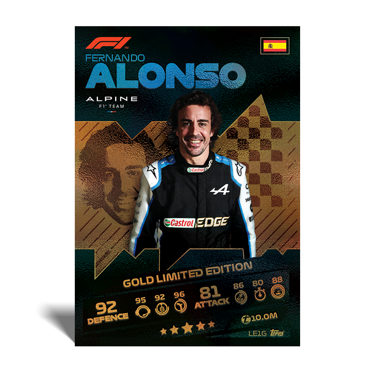 Le pack de démarrage contient 1 carte en édition limitée GOLD LE1G. Fernando Alonso
