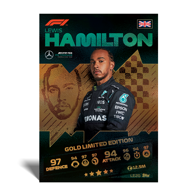 Le multipack contient 1 carte en édition limitée GOLD LE2G. Lewis Hamilton