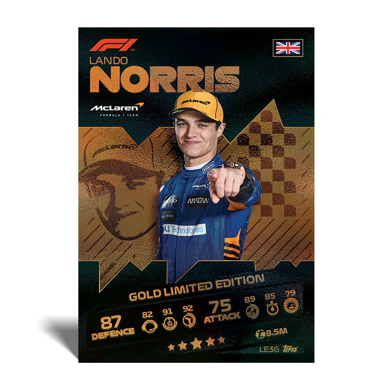 Chaque petite boîte en métal contient 1 carte en édition limitée GOLD LE3G. Lando Norris