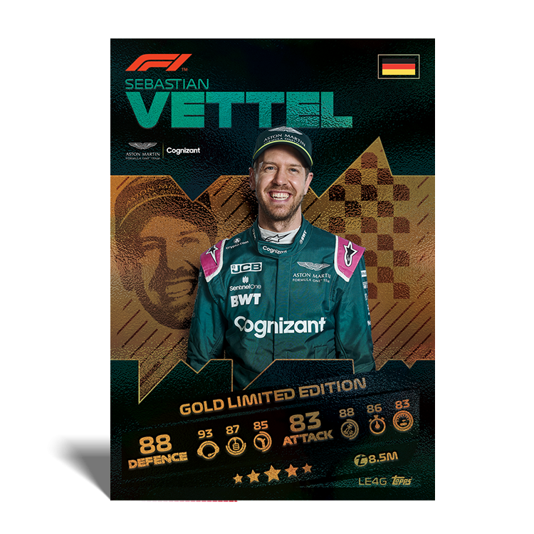 La grande boîte en métal contient 1 carte en édition limitée GOLD LE4G. Sebastian Vettel