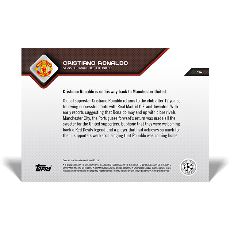 Durant le mercato estival, Topps a régulièrement proposé des cartes SIGNS FOR, en édition limitée, consacrées aux principaux transferts dans les grands clubs.