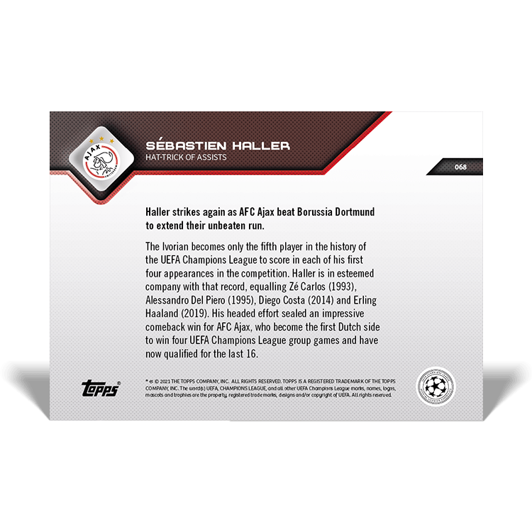 TOPPS NOW « UEFA CHAMPIONS LEAGUE 2021/22 » : visuel des cartes 060 à 069 (matchs de groupe des 02 et 03/11) Thierry K.09/11/202125/07/2022ACTUALITÉS, DÉCOUVERTE, EDITION LIMITÉE Navigation des articles PrécédentSuivant Partager : Cliquer pour imprimer(ouvre dans une nouvelle fenêtre) Imprimer Cliquer pour envoyer un lien par e-mail à un ami(ouvre dans une nouvelle fenêtre) E-mail Cliquez pour partager sur Facebook(ouvre dans une nouvelle fenêtre) Facebook Cliquer pour partager sur X(ouvre dans une nouvelle fenêtre) X J’aime chargement… Articles similaires