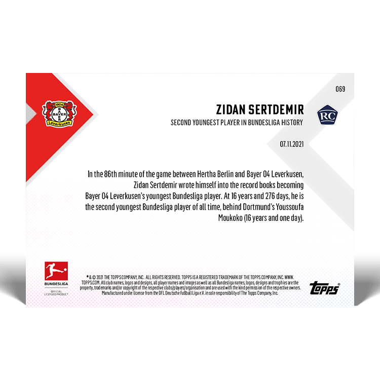 Topps a édité une carte Rookie pour deux jeunes pousses du Bayer Leverkusen, Iker Bravo et Zidan Sertdemir, âgés de seize ans et entrés en jeu dimanche pour la première fois en Bundesliga.