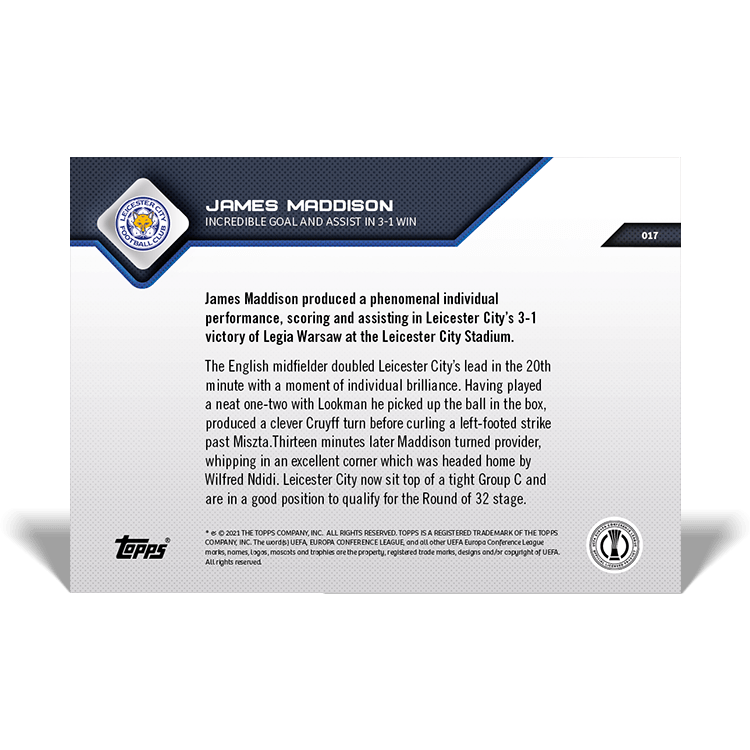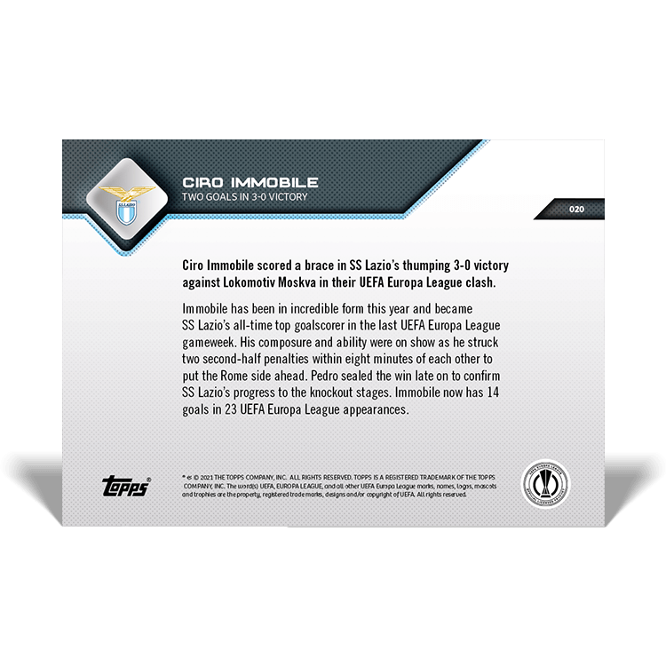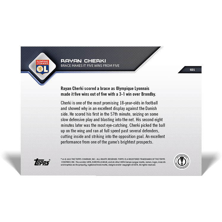 TOPPS NOW « UEFA EUROPA LEAGUE 2021/22 » : visuel des cartes 016 à 021 (matchs de groupe du 25/11) Thierry K.01/12/202125/07/2022ACTUALITÉS, DÉCOUVERTE, EDITION LIMITÉE Navigation des articles PrécédentSuivant Partager : Cliquer pour imprimer(ouvre dans une nouvelle fenêtre) Imprimer Cliquer pour envoyer un lien par e-mail à un ami(ouvre dans une nouvelle fenêtre) E-mail Cliquez pour partager sur Facebook(ouvre dans une nouvelle fenêtre) Facebook Cliquer pour partager sur X(ouvre dans une nouvelle fenêtre) X J’aime chargement… Articles similaires