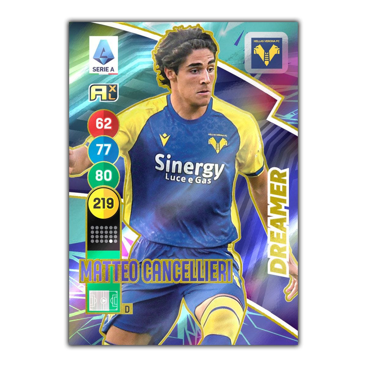 Panini Italie a lancé une série de vingt nouvelles cartes DREAMER dans le cadre de la collection CALCIATORI SERIE A ADRENALYN XL 2021-22. Elles sont tirées à 1000 exemplaires et vendues 9,90 € l’unité.