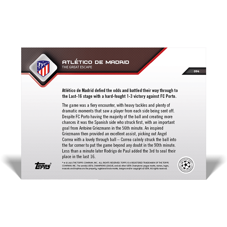 TOPPS NOW « UEFA CHAMPIONS LEAGUE 2021/22 » : visuel des cartes 087 à 101 (matchs de groupe des 07 et 08/12) Thierry K.13/12/202125/07/2022ACTUALITÉS, DÉCOUVERTE, EDITION LIMITÉE Navigation des articles PrécédentSuivant Partager : Cliquer pour imprimer(ouvre dans une nouvelle fenêtre) Imprimer Cliquer pour envoyer un lien par e-mail à un ami(ouvre dans une nouvelle fenêtre) E-mail Cliquez pour partager sur Facebook(ouvre dans une nouvelle fenêtre) Facebook Cliquer pour partager sur X(ouvre dans une nouvelle fenêtre) X J’aime chargement… Articles similaires