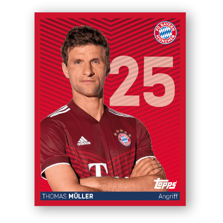 LA CHECK-LIST 1. Topps Logo 2. Bayern Logo 3. MIA SAN MIA 4. Die Säbener Straße 5. Trainingsgelände an der Säbener Straße 6. Athletiktraining beim FC Bayern 7. 8:0 Auftaktsieg gegen FC Schalke 04 8. UEFA Champions League Viertelfinale gegen Paris 9. Lewandowski’s historisches Rekord-Tor 10. Verabschiedung David Alaba 11. Deutscher Meister 2020/21 12. FC Bayern München Herren 2021/22 13. FC Bayern München Herren 2021/22 14. Julian Nagelsmann 15. Julian Nagelsmann 16. Benjamin Glück 17. Xaver Zembrod 18. Dino Toppmöller 19. Prof. Dr. Holger Broich 20. Toni Tapalović 21. Manuel Neuer 22. Manuel Neuer 23. Manuel Neuer 24. Sven Ulreich 25. Christian Früchtl 26. Benjamin Pavard 27. Benjamin Pavard 28. Lucas Hernández 29. Lucas Hernández 30. Dayot Upamecano 31. Dayot Upamecano 32. Tanguy Nianzou 33. Tanguy Nianzou 34. Niklas Süle 35. Niklas Süle 36. Omar Richards 37. Omar Richards 38. Alphonso Davies 39. Alphonso Davies 40. Bouna Sarr 41. Bouna Sarr 42. Josip Stanišić 43. Josip Stanišić 44. Leon Goretzka 45. Leon Goretzka 46. Joshua Kimmich 47. Joshua Kimmich 48. Marc Roca 49. Marc Roca 50. Michaël Cuisance 51. Michaël Cuisance 52. Marcel Sabitzer 53. Marcel Sabitzer 54. Corentin Tolisso 55. Corentin Tolisso 56. Thomas Müller 57. Thomas Müller 58. Serge Gnabry 59. Serge Gnabry 60. Leroy Sané 61. Leroy Sané 62. Jamal Musiala 63. Jamal Musiala 64. Kingsley Coman 65. Kingsley Coman 66. Robert Lewandowski 67. Robert Lewandowski 68. Eric Maxim Choupo-Moting 69. Eric Maxim Choupo-Moting 70. Heimtrikot 71. Auswärtstrikot 72. UEFA Champions League Trikot 73. Franz John 74. Erste Deutsche Meisterschaft 1932 75. Das FC Bayern-Team 1964/65 76. Erster Europapokal-Sieg der Clubgeschichte 1967 77. Erste Deutsche Meisterschaft in der Bundesliga 1969 78. Uli Hoeneß wird Manager des FC Bayern 79. Der FC Bayern wird 1987 zum Deutschen Rekordmeister 80. UEFA Champions League-Sieg 2001 81. Umzug in die Allianz Arena 2005 82. Triple-Sieger 2013 83. UEFA Champions League-Sieg 2020 84. 9. Deutsche Meisterschaft in Folge 85. FC Bayern Müchen Frauen 1. Mannschaft 86. FC Bayern Müchen Frauen 1. Mannschaft 87. Jens Scheuer 88. Laura Benkarth 89. Maria Luisa Grohs 90. Janina Leitzig 91. Kristin Demann 92. Hanna Glas 93. Giulia Gwinn 94. Maximiliane Rall 95. Glódís Perla Viggósdóttir 96. Carina Wenninger 97. Marina Hegering 98. Carolin Simon 99. Saki Kumagai 100. Lineth Beerensteyn 101. Linda Dallmann 102. Sydney Lohmann 103. Lina Magull 104. Viviane Asseyi 105. Karólína Lea Vilhjálmsdóttir 106. Sarah Zadrazil 107. Lea Schüller 108. Jovana Damnjanović 109. Ivana Rudelić 110. Klara Bühl 111. Sofia Jakobsson 112. Die Heimat des FC Bayern 113. Die Allianz Arena 114. Ein Blick in die Bayern-Kabine 115. Ein Blick auf den Platz und die Ränge 116. Die Trophäensammlung des FC Bayern 117. Die Trikotwand 118. Emotionale Momente von damals bis heute 119. Suche die Fehler 120. Kids Club Fußballcamps 121. Kids Club/ Einlaufen mit den Profis 122. Kids Club-Pressekonferenz 123. Berni (Maskottchen) 124. Jamal Musiala (U19) 125. FC Bayern Campus POSTER Julian Nagelsmann Manuel Neuer Sven Ulreich Benjamin Pavard Lucas Hernández Dayot Upamecano Tanguy Nianzou Niklas Süle Omar Richards Alphonso Davies Josip Stanišić Leon Goretzka Joshua Kimmich Michaël Cuisance Marc Roca Marcel Sabitzer Corentin Tolisso Thomas Müller Serge Gnabry Leroy Sané Jamal Musiala Kingsley Coman Robert Lewandowski Eric Maxim Choupo-Moting source collectosk.com