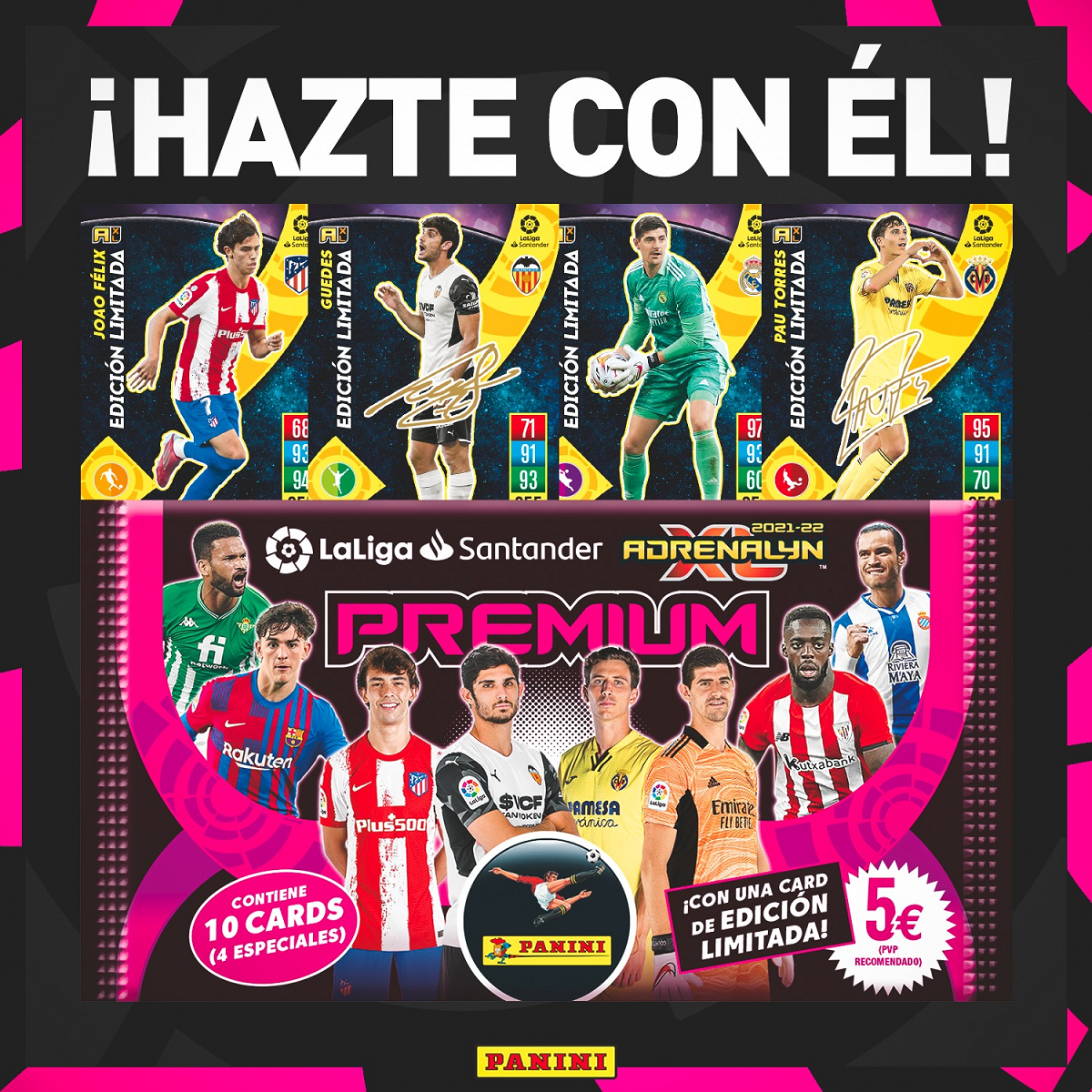 La pochette PREMIUM contient 1 carte en édition limitée PREMIUM aléatoire parmi 8 modèles LEP. Joao Félix (Atlético de Madrid) LEP. Joao Félix (Atlético de Madrid) / Variante FIRMA LEP. Courtois (Real Madrid) LEP. Courtois (Real Madrid) / Variante FIRMA LEP. Guedes (Valencia C.F.) LEP. Guedes (Valencia C.F.) / Variante FIRMA LEP. Pau Torres (Villarreal C.F.) LEP. Pau Torres (Villarreal C.F.) / Variante FIRMA