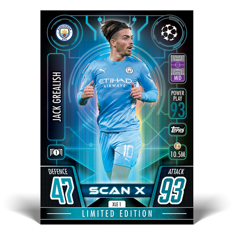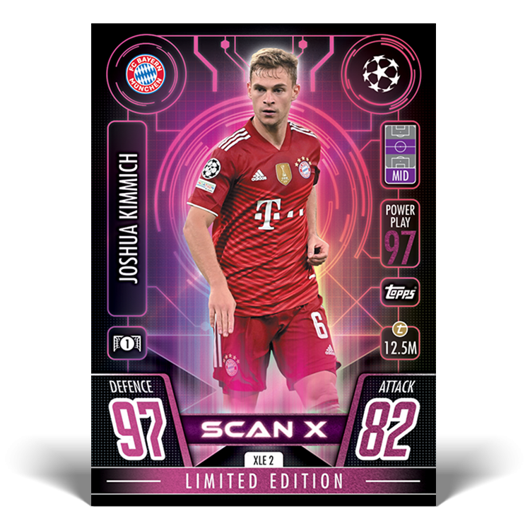 Chaque petite boîte en métal SCAN X contient également 1 carte en édition limitée SCAN X exclusive (selon modèle) XLE 1. Jack Grealish (Manchester City) - Boîte SCAN X BLUE WAVEXLE 2. Joshua Kimmich (FC Bayern München) - Boîte SCAN X CRIMSON LASER