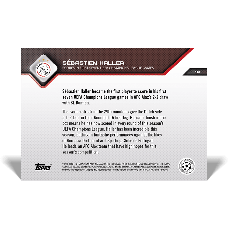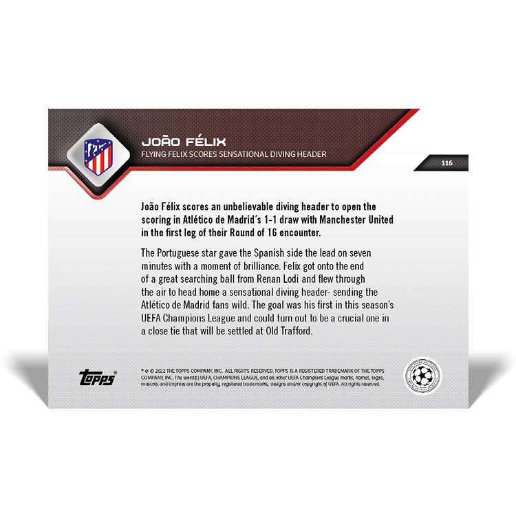 TOPPS NOW « UEFA CHAMPIONS LEAGUE 2021/22 » : visuel des cartes 116 à 118 (huitièmes de finale aller du 23/02) Thierry K.01/03/202225/07/2022ACTUALITÉS, DÉCOUVERTE, EDITION LIMITÉE Navigation des articles PrécédentSuivant Partager : Cliquer pour imprimer(ouvre dans une nouvelle fenêtre) Imprimer Cliquer pour envoyer un lien par e-mail à un ami(ouvre dans une nouvelle fenêtre) E-mail Cliquez pour partager sur Facebook(ouvre dans une nouvelle fenêtre) Facebook Cliquer pour partager sur X(ouvre dans une nouvelle fenêtre) X J’aime chargement… Articles similaires