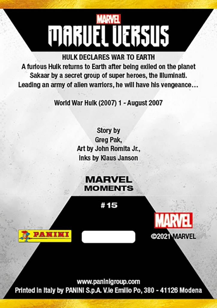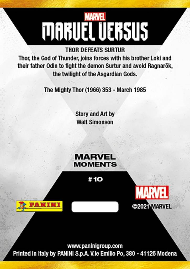 Dans le cadre de la collection MARVEL VERSUS, Panini lance une série de cartes en tirage limité, MARVEL MOMENTS, revenant sur les plus beaux moments et les plus grands héros de cet univers.