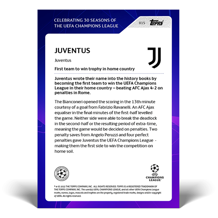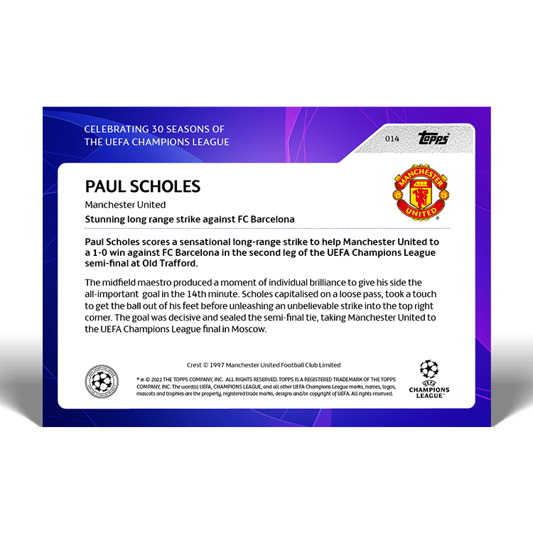Topps célèbre les trente ans de l’UEFA Champions League avec les moments les plus emblématiques de l’histoire de la compétition.