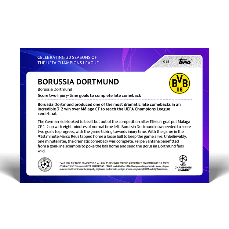 Topps célèbre les trente ans de l’UEFA Champions League avec les moments les plus emblématiques de l’histoire de la compétition.