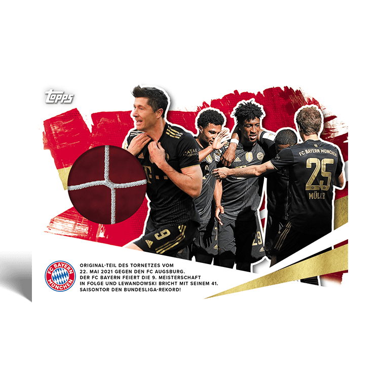 L’éditeur annonce également 1 carte AUTOGRAPH (dans une boîte sur quatre) et surtout 1 carte RELIC (dans une boîte sur treize) avec un morceau original du filet de but, utilisé lors de la dernière journée de la saison 2020/21, dans lequel Robert Lewandowski a marqué sa quarante-et-unième réalisation de la saison.
