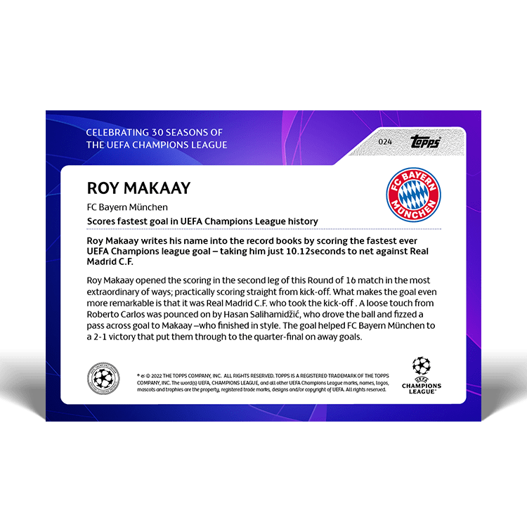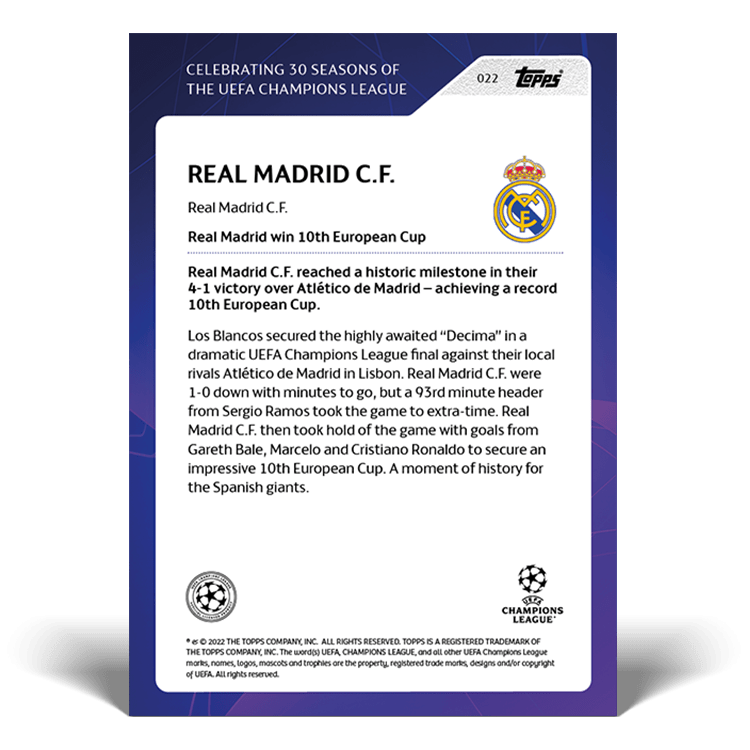 Topps célèbre les trente ans de l’UEFA Champions League avec les moments les plus emblématiques de l’histoire de la compétition.