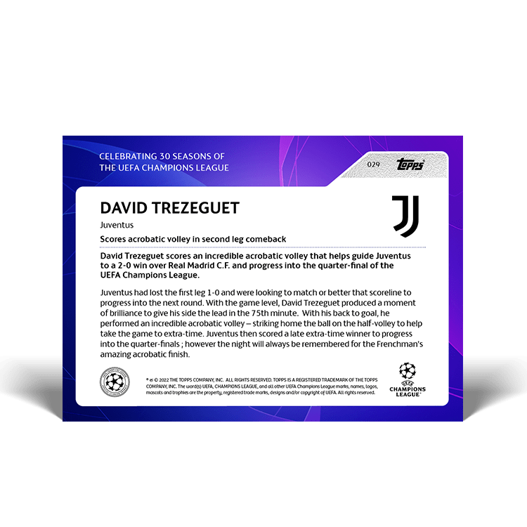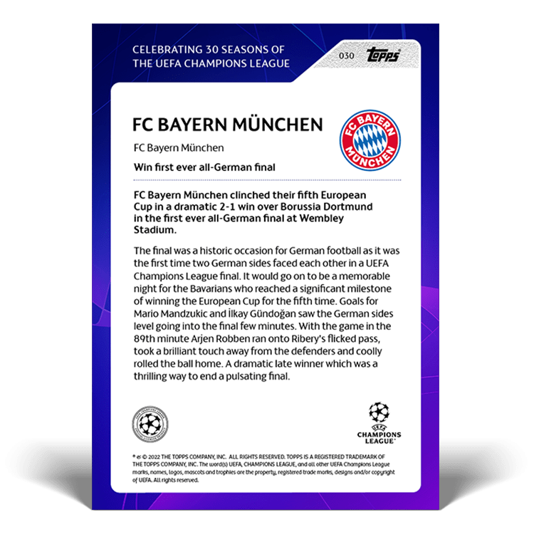 Topps célèbre les trente ans de l’UEFA Champions League avec les moments les plus emblématiques de l’histoire de la compétition.