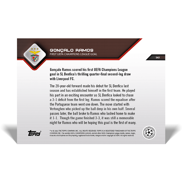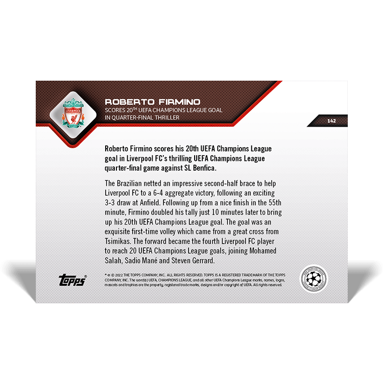 TOPPS NOW « UEFA CHAMPIONS LEAGUE 2021/22 » : visuel des cartes 141 à 143 (quarts de finale retour du 13/04) Thierry K.20/04/202225/07/2022ACTUALITÉS, DÉCOUVERTE, EDITION LIMITÉE Navigation des articles PrécédentSuivant Atlético de Madrid 0 – 0 Manchester City Liverpool 3 – 3 Benfica Partager : Cliquer pour imprimer(ouvre dans une nouvelle fenêtre) Imprimer Cliquer pour envoyer un lien par e-mail à un ami(ouvre dans une nouvelle fenêtre) E-mail Cliquez pour partager sur Facebook(ouvre dans une nouvelle fenêtre) Facebook Cliquer pour partager sur X(ouvre dans une nouvelle fenêtre) X J’aime chargement… Articles similaires