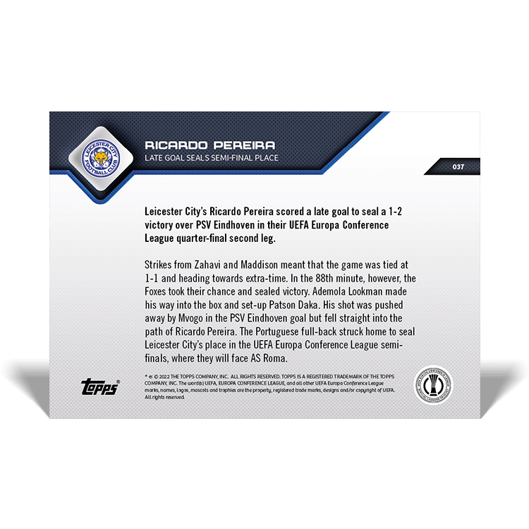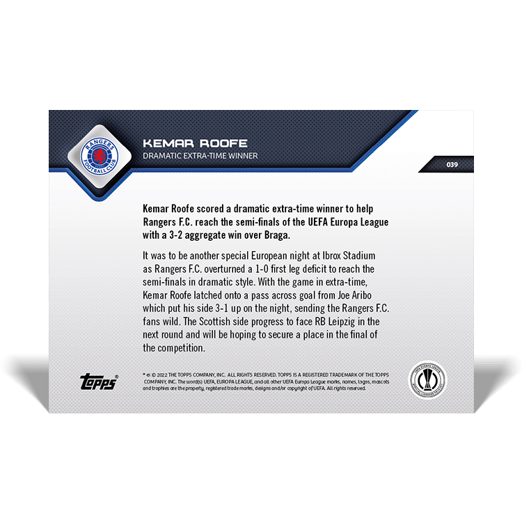 TOPPS NOW « UEFA EUROPA LEAGUE 2021/22 » : visuel des cartes 036 à 039 (quarts de finale retour du 14/04) Thierry K.22/04/202225/07/2022ACTUALITÉS, DÉCOUVERTE, EDITION LIMITÉE Navigation des articles PrécédentSuivant Partager : Cliquer pour imprimer(ouvre dans une nouvelle fenêtre) Imprimer Cliquer pour envoyer un lien par e-mail à un ami(ouvre dans une nouvelle fenêtre) E-mail Cliquez pour partager sur Facebook(ouvre dans une nouvelle fenêtre) Facebook Cliquer pour partager sur X(ouvre dans une nouvelle fenêtre) X J’aime chargement… Articles similaires