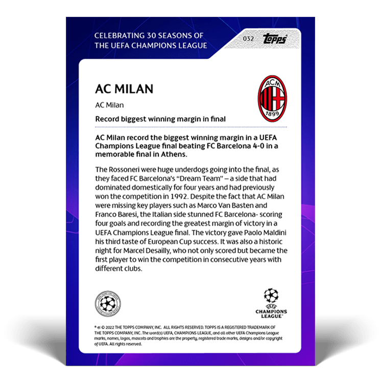 Topps célèbre les trente ans de l’UEFA Champions League avec les moments les plus emblématiques de l’histoire de la compétition.