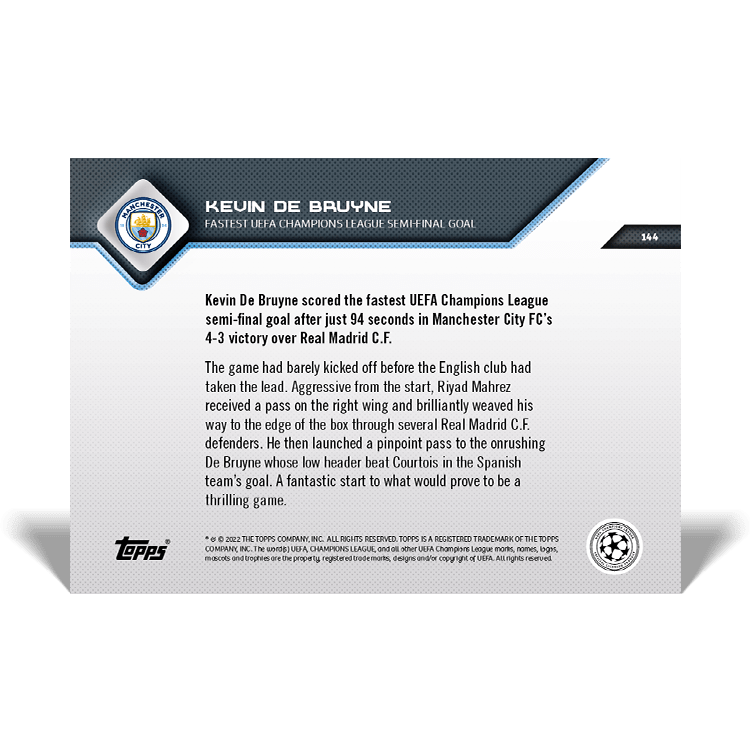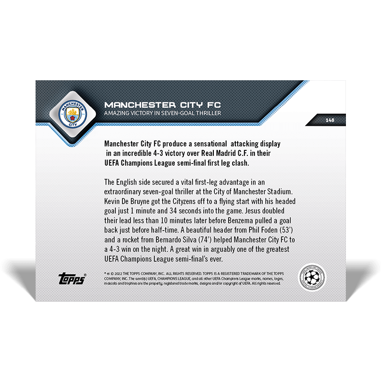 TOPPS NOW « UEFA CHAMPIONS LEAGUE 2021/22 » : visuel des cartes 144 à 148 (demi-finale aller du 26/04) Thierry K.29/04/202225/07/2022ACTUALITÉS, DÉCOUVERTE, EDITION LIMITÉE Navigation des articles PrécédentSuivant Manchester City 4 – 3 Real Madrid Partager : Cliquer pour imprimer(ouvre dans une nouvelle fenêtre) Imprimer Cliquer pour envoyer un lien par e-mail à un ami(ouvre dans une nouvelle fenêtre) E-mail Cliquez pour partager sur Facebook(ouvre dans une nouvelle fenêtre) Facebook Cliquer pour partager sur X(ouvre dans une nouvelle fenêtre) X J’aime chargement… Articles similaires