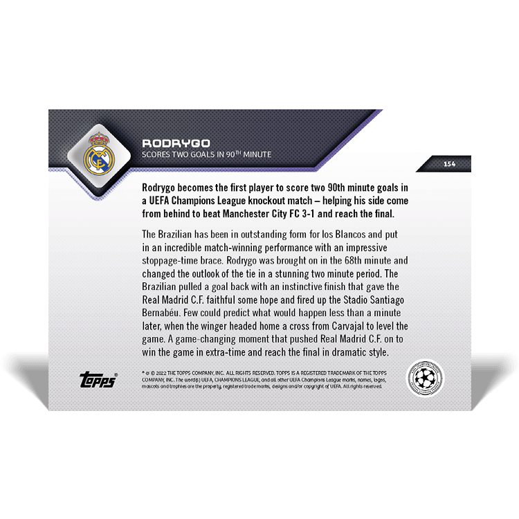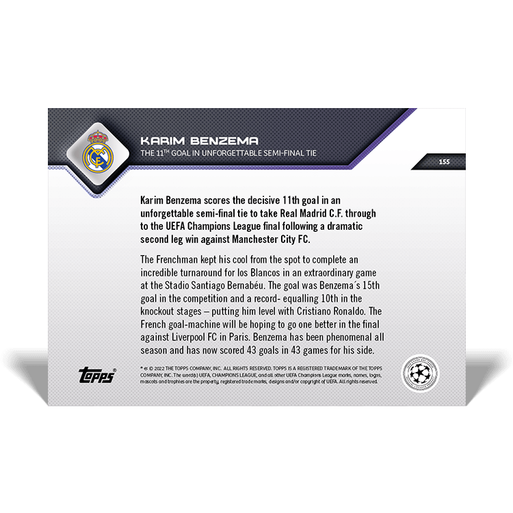 TOPPS NOW « UEFA CHAMPIONS LEAGUE 2021/22 » : visuel des cartes 153 à 157 (demi-finale retour du 04/05) Thierry K.06/05/202225/07/2022ACTUALITÉS, DÉCOUVERTE, EDITION LIMITÉE Navigation des articles PrécédentSuivant Real Madrid 3 – 1 (prol.) Manchester City Partager : Cliquer pour imprimer(ouvre dans une nouvelle fenêtre) Imprimer Cliquer pour envoyer un lien par e-mail à un ami(ouvre dans une nouvelle fenêtre) E-mail Cliquez pour partager sur Facebook(ouvre dans une nouvelle fenêtre) Facebook Cliquer pour partager sur X(ouvre dans une nouvelle fenêtre) X J’aime chargement… Articles similaires
