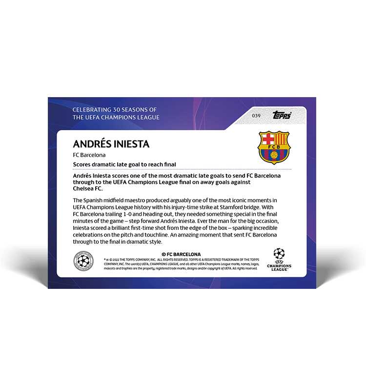 Topps célèbre les trente ans de l’UEFA Champions League avec les moments les plus emblématiques de l’histoire de la compétition.