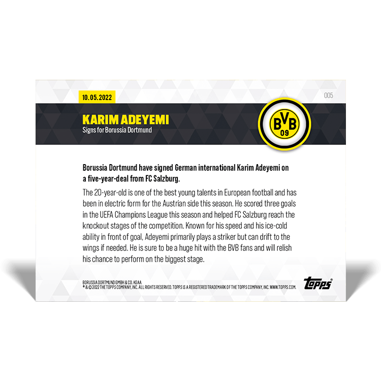 Comme toujours en Bundesliga, Topps Royaume-Uni propose les textes en anglais et Topps Allemagne en langue germanique.