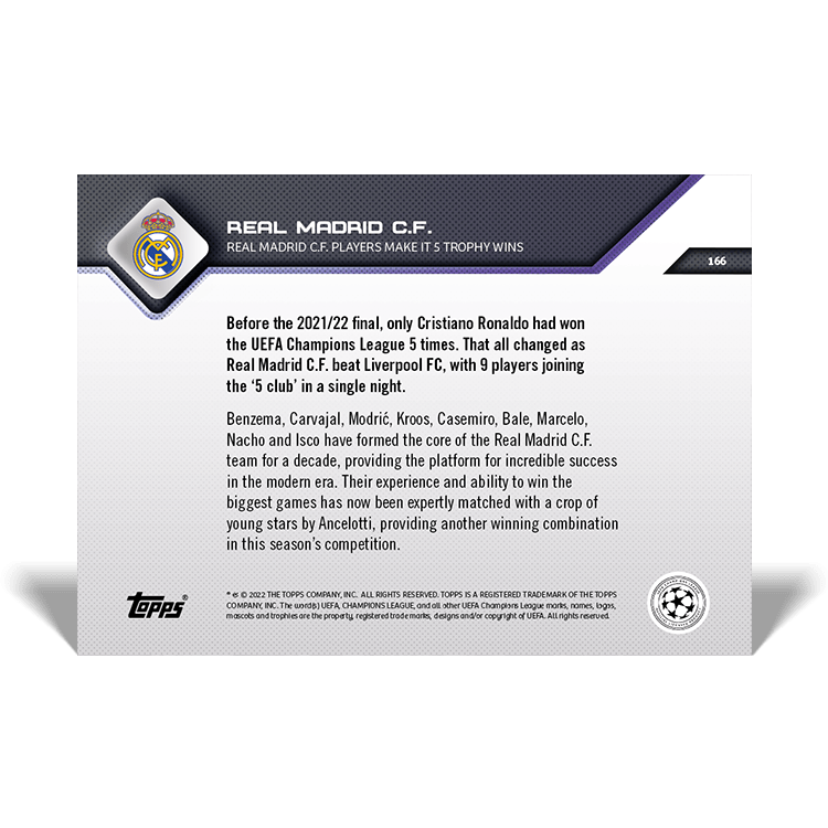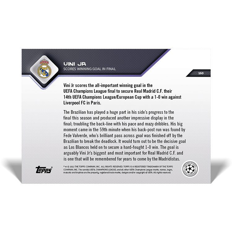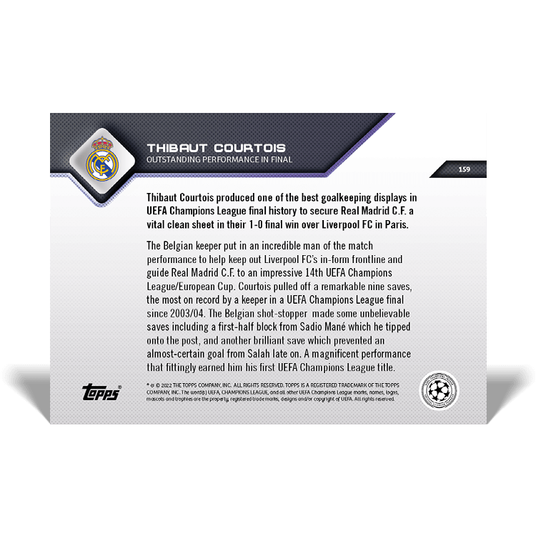 TOPPS NOW « UEFA CHAMPIONS LEAGUE 2021/22 » : visuel des cartes 158 à 166 (finale du 28/05) Thierry K.31/05/202225/07/2022ACTUALITÉS, DÉCOUVERTE, EDITION LIMITÉE Navigation des articles PrécédentSuivant Liverpool 0 – 1 Real Madrid Partager : Cliquer pour imprimer(ouvre dans une nouvelle fenêtre) Imprimer Cliquer pour envoyer un lien par e-mail à un ami(ouvre dans une nouvelle fenêtre) E-mail Cliquez pour partager sur Facebook(ouvre dans une nouvelle fenêtre) Facebook Cliquer pour partager sur X(ouvre dans une nouvelle fenêtre) X J’aime chargement… Articles similaires