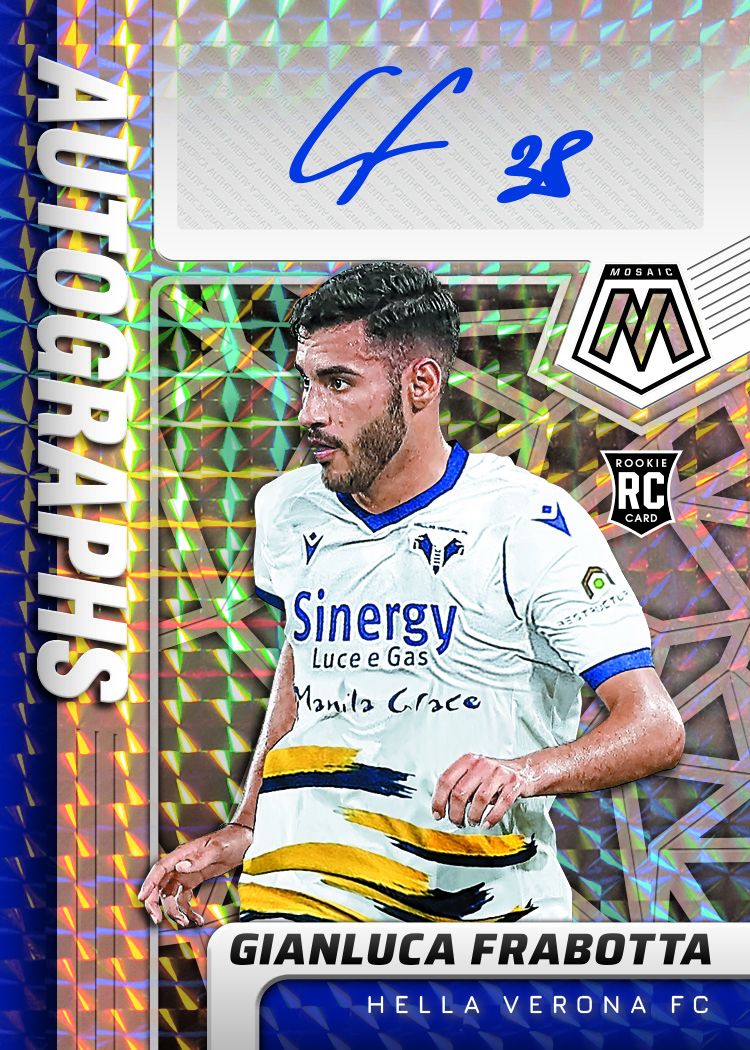AUTOGRAPH / SCRIPT MOSAIC 1. Asmir Begovic - AC Milan 3. Ignazio Abate - AC Milan 4. Kaka - AC Milan 5. Marco Van Basten - AC Milan 6. Paolo Maldini - AC Milan 7. Pierre Kalulu - AC Milan 8. Ruud Gullit - AC Milan 9. Sandro Tonali - AC Milan 10. Thiago Silva - AC Milan 11. Lucas Martinez Quarta - ACF Fiorentina 12. Roberto Baggio - ACF Fiorentina 14. Marash Kumbulla - AS Roma 15. Nicolo Zaniolo - AS Roma 16. Pau Lopez - AS Roma 17. Robin Gosens - FC Internazionale Milano 21. Arturo Vidal - FC Internazionale Milano 22. Hernan Crespo - FC Internazionale Milano 24. Luis Figo - FC Internazionale Milano 32. Andreas Moller - Juventus 33. Cristiano Ronaldo - Juventus 34. Douglas Costa - Juventus 35. Edwin van der Sar - Juventus 36. Kingsley Coman - Juventus 39. Leonardo Bonucci - Juventus 43. Ciro Immobile - SS Lazio 44. Sergej Milinkovic-Savic - SS Lazio 45. Juan Camilo Zuniga - SSC Napoli 46. Etrit Berisha - Torino FC 47. Mauricio Pinilla - Atalanta BC 48. Roberto Pereyra - Udinese Calcio 49. Rodrigo de Paul - Udinese Calcio 50. Luca Toni - ACF Fiorentina INSERT / INTERNATIONAL MEN OF MASTERY 1. Brahim Diaz - AC Milan 2. Riccardo Sottil - ACF Fiorentina 3. Jordan Veretout - AS Roma 4. Nicolo Zaniolo - AS Roma 5. Aleksei Miranchuk - Atalanta BC 6. Marten de Roon - Atalanta BC 7. Merih Demiral - Atalanta BC 8. Aaron Hickey - Bologna FC 9. Riccardo Orsolini - Bologna FC 10. Nahitan Nandez - Cagliari Calcio 11. Razvan Marin - Cagliari Calcio 12. Patrick Cutrone - Empoli FC 13. Sebastiano Luperto - Empoli FC 14. Arturo Vidal - FC Internazionale Milano 15. Ivan Perisic - FC Internazionale Milano 16. Stefan de Vrij - FC Internazionale Milano 17. Salvatore Sirigu - Genoa CFC 18. Ivan Ilic - Hellas Verona FC 19. Gianluca Caprari - Hellas Verona FC 20. Adrien Rabiot - Juventus 21. Giorgio Chiellini - Juventus 22. Moise Kean - Juventus 23. Daniele Verde - Spezia Calcio 24. Mbala Nzola - Spezia Calcio 25. Sergej Milinkovic-Savic - SS Lazio 26. Matteo Politano - SSC Napoli 27. Piotr Zielinski - SSC Napoli 28. Ola Aina - Torino FC 29. Dennis Praet - Torino FC 30. Maya Yoshida - UC Sampdoria 31. Mikkel Damsgaard - UC Sampdoria 32. Morten Thorsby - UC Sampdoria 33. Ignacio Pussetto - Udinese Calcio 34. Federico Bonazzoli - US Salernitana 35. Matteo Ruggeri - US Salernitana 36. Domenico Berardi - US Sassuolo Calcio 37. Giacomo Raspadori - US Sassuolo Calcio 38. David Okereke - Venezia FC 39. Ethan Ampadu - Venezia FC 40. Tanner Tessmann - Venezia FC INSERT / MONTAGE 1. Ante Rebic - AC Milan 2. Lucas Torreira - ACF Fiorentina 3. Amadou Diawara - AS Roma 4. Roger Ibanez - AS Roma 5. Mario Pasalic - Atalanta BC 6. Merih Demiral - Atalanta BC 7. Emanuel Vignato - Bologna FC 8. Marko Arnautovic - Bologna FC 9. Keita Balde - Cagliari Calcio 10. Andrea Pinamonti - Empoli FC 11. Nicolas Haas - Empoli FC 12. Lautaro Martinez - FC Internazionale Milano 13. Mattia Destro - Genoa CFC 14. Milan Badelj - Genoa CFC 15. Gianluca Frabotta - Hellas Verona FC 16. Kevin Lasagna - Hellas Verona FC 17. Alex Sandro - Juventus 18. Leonardo Bonucci - Juventus 19. Giulio Maggiore - Spezia Calcio 20. Ciro Immobile - SS Lazio 21. Elseid Hysaj - SS Lazio 22. Eljif Elmas - SSC Napoli 23. Wilfried Singo - Torino FC 24. Emil Audero - UC Sampdoria 25. Omar Colley - UC Sampdoria 26. Tolgay Arslan - Udinese Calcio 27. Franck Ribery - US Salernitana 28. Filip Djuricic - US Sassuolo Calcio 29. Rogerio - US Sassuolo Calcio 30. Gianluca Busio - Venezia FC