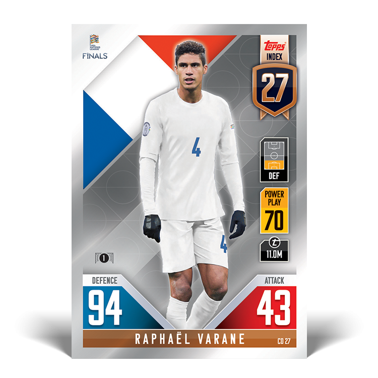LES CARTES "LIMITED EDITION" GOLD LE 1. Erling Haaland (Norway) LE 2. Robert Lewandowski (Poland) LE 3. Raphael Varane (France) LE 5. Romelu Lukaku (Belgium) LE 6. Virgil van Dijk (Netherlands) LE 7. Serge Gnabry (Germany) LE 8. Jack Grealish (England) HOMEGROWN HERO LE HH-AG. Antoine Griezmann (France) LE HH-EH. Eden Hazard (Belgium) LE HH-GC. Giorgio Chiellini (Italy) LE HH-JB. Jude Bellingham (England) LE HH-LG. Leon Goretzka (Germany) LE HH-MD. Menphis Depay (Netherlands) LE HH-MS. Marcel Sabitzer (Austria) LE HH-WS. Wojciech Szczęsny (Poland)