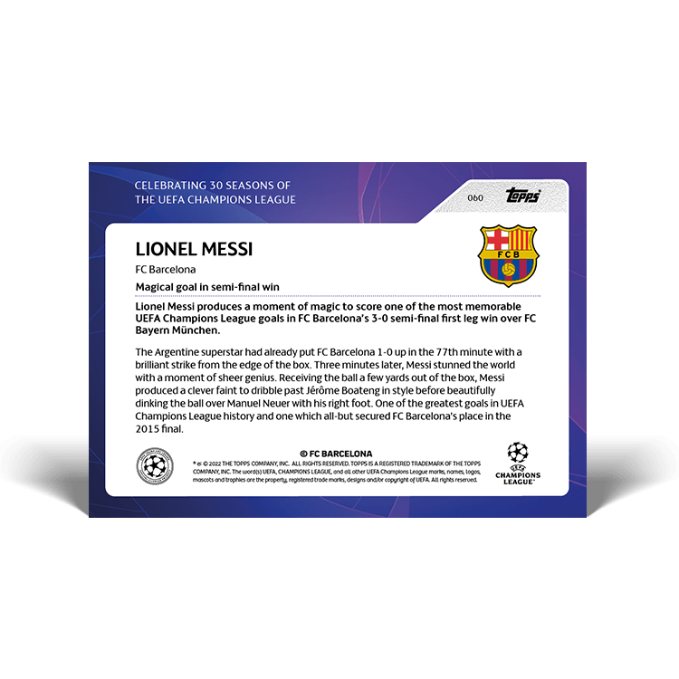 Topps célèbre les trente ans de l’UEFA Champions League avec les moments les plus emblématiques de l’histoire de la compétition.