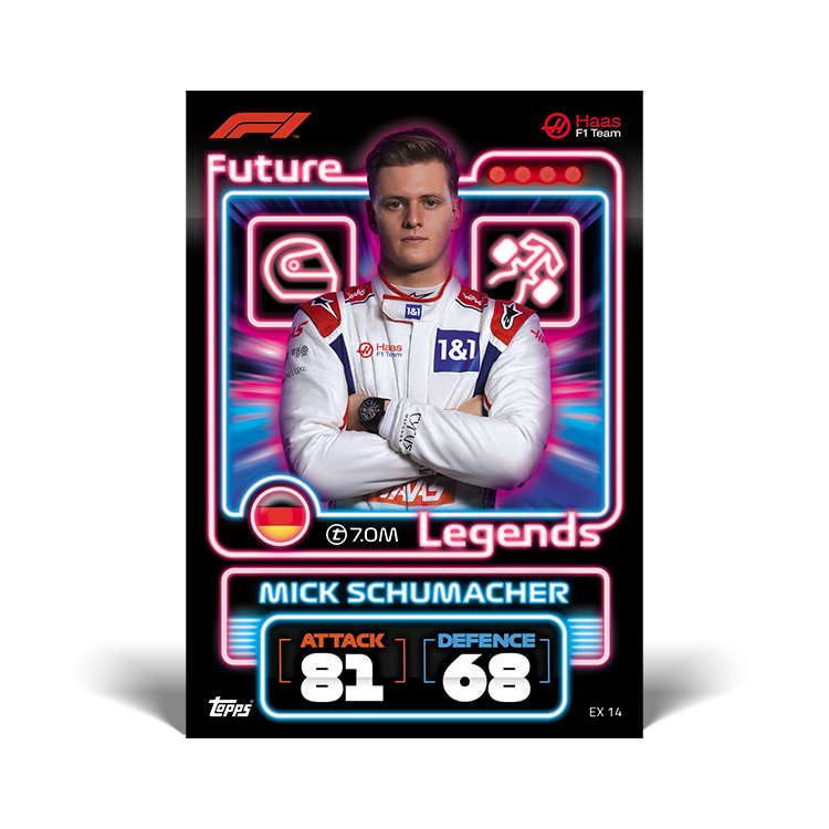 La grande boîte en métal FUTURE LEGENDS contient 2 cartes exclusives EX 13. Lando Norris (McLaren)EX 14. Mick Schumacher (Haas)