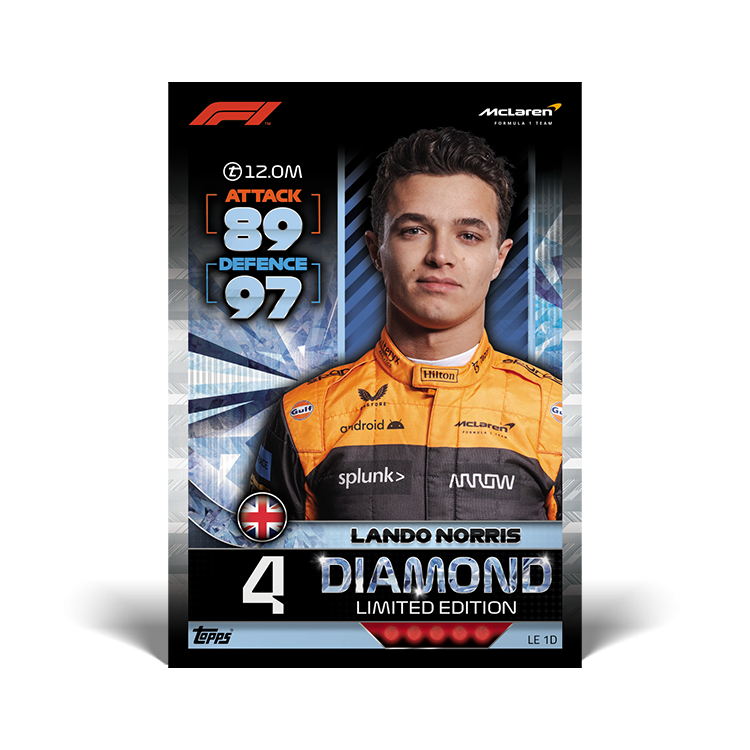Le pack de démarrage contient 1 carte en édition limitée DIAMOND LE 1D. Lando Norris (McLaren)