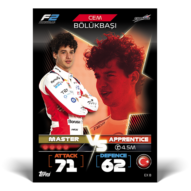 La petite boîte en métal (rouge) contient 4 cartes MASTER VS APPRENTICE exclusives EX 1. Max Verstappen (Red Bull Racing)EX 2. Fernando Alonso (Alpine)