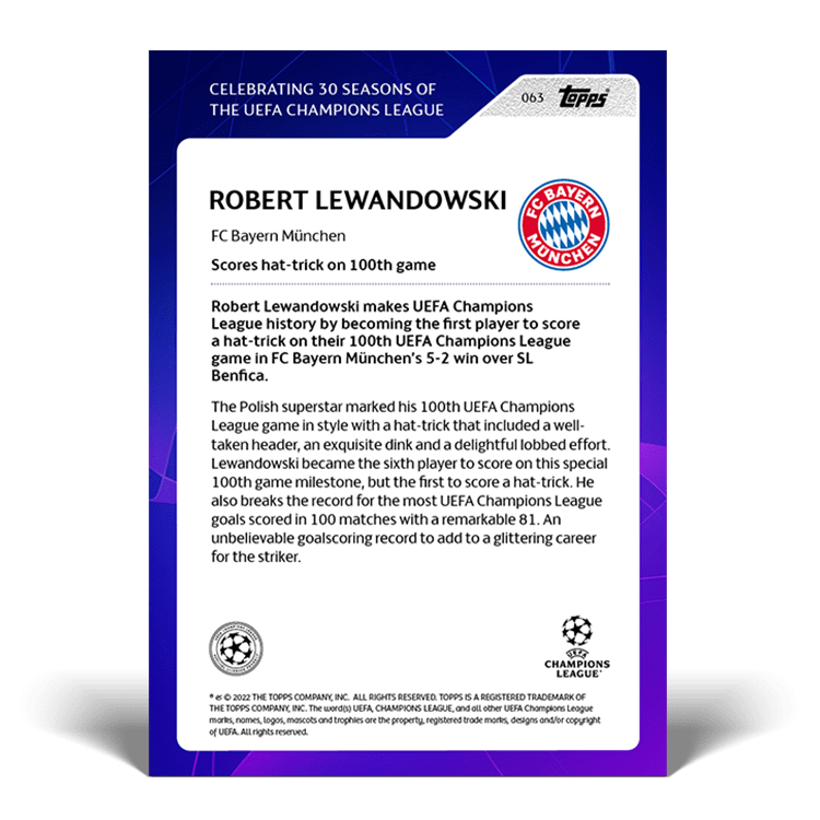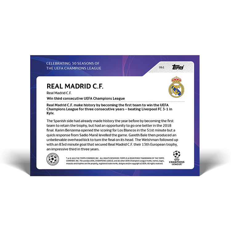 Topps célèbre les trente ans de l’UEFA Champions League avec les moments les plus emblématiques de l’histoire de la compétition.