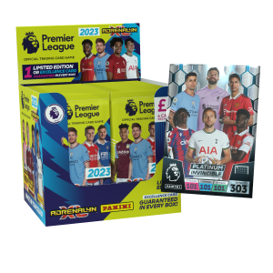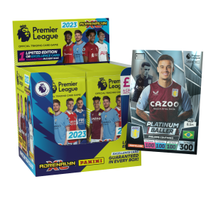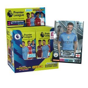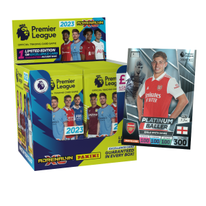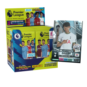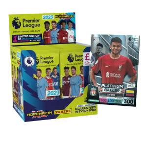 Chaque boîte de 70 pochettes contient 1 carte PLATINUM BALLER ou PLATINUM INVINCIBLE (numérotées sur 200) PB#1. Emile Smith-Rowe (Arsenal) PB#2. Philippe Coutinho (Aston Villa) PB#3. Kai Havertz (Chelsea) PB#4. Luis Díaz (Liverpool) PB#5. Jack Grealish (Manchester City) PB#6. Jadon Sancho (Manchester United) PB#7. Son Heung-Min (Tottenham Hotspur) PB#8. Jarrod Bowen (West Ham United) PI. PLATINUM INVINCIBLE