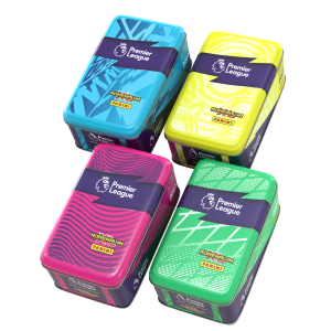 Chaque petite boîte en métal contient 1 carte en édition limitée aléatoire parmi 4 modèles LE. Marc Cucarella (Brighton & Hove Albion) LE. Lucas Moura (Tottenham Hotspur) LE. Takehiro Tomiyasu (Arsenal) LE. Ollie Watkins (Aston Villa)