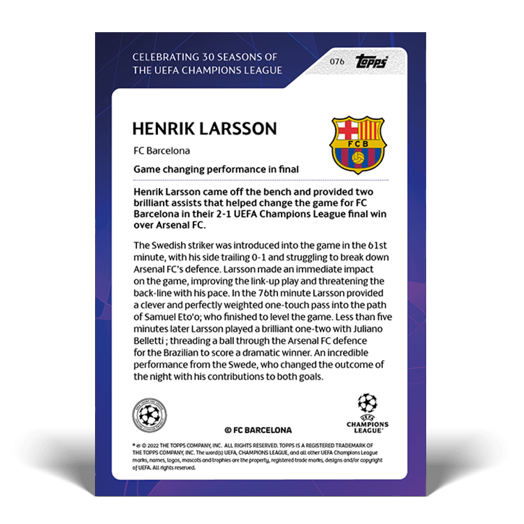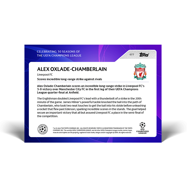 Topps célèbre les trente ans de l’UEFA Champions League avec les moments les plus emblématiques de l’histoire de la compétition.