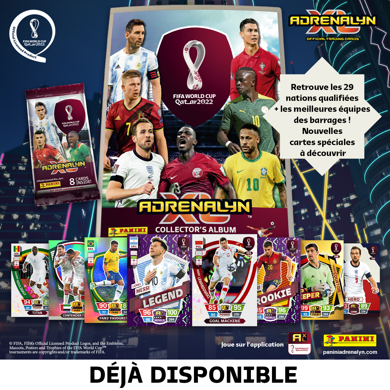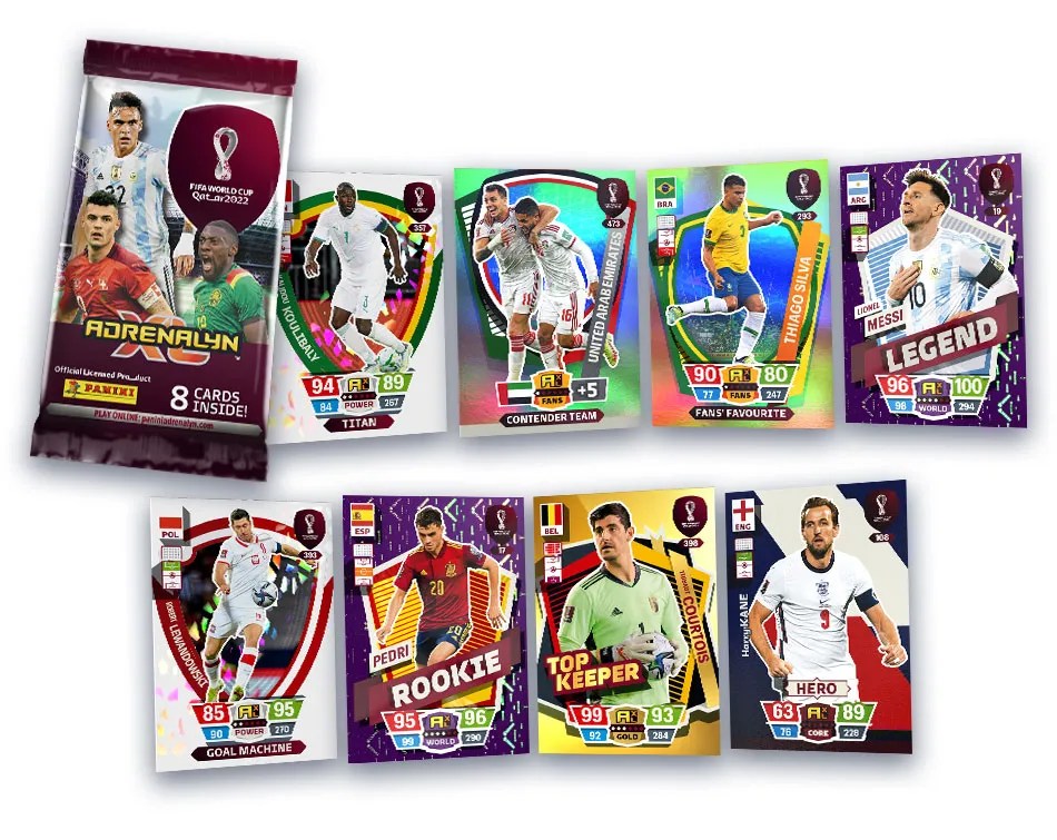 La pochette PREMIUM contient 1 carte en édition limitée PREMIUM aléatoire parmi 8 modèles LEP. Thibaut Courtois (Belgium) LEP. Memphis Depay (Netherlands) LEP. Phil Foden (England) LEP. Mateo Kovačić (Croatia) LEP. Sadio Mané (Senegal) LEP. Marquinhos (Brazil) LEP. Pedri (Spain) LEP. Cristiano Ronaldo (Portugal)