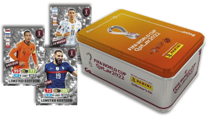 Chaque grande boîte en métal contient 3 cartes en édition limitée LE. Karim Benzema (France) LE. Ángel Di María (Argentina) LE. Virgil van Dijk (Netherlands)