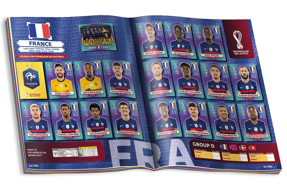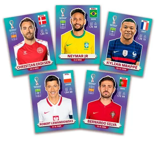 LES STICKERS "EXTRA" LEGEND Almoez Ali (Qatar) Sadio Mané (Senegal) Lionel Messi (Argentina) Guillermo Ochoa (Mexico) Robert Lewandowski (Poland) Raphaël Varane (France) Kylian Mbappé (France) Christian Eriksen (Denmark) Kevin De Bruyne (Belgium) Luka Modrić (Croatia) Neymar Jr (Brazil) Cristiano Ronaldo (Portugal) Luis Suárez (Uruguay) Heung-Min Son (South Korea) ROOKIE Ryan Gravenberch (Netherlands) Jude Bellingham (England) Giovanni Reyna (United States) Gavi (Spain) Alphonso Davies (Canada) Dušan Vlahović (Serbia)