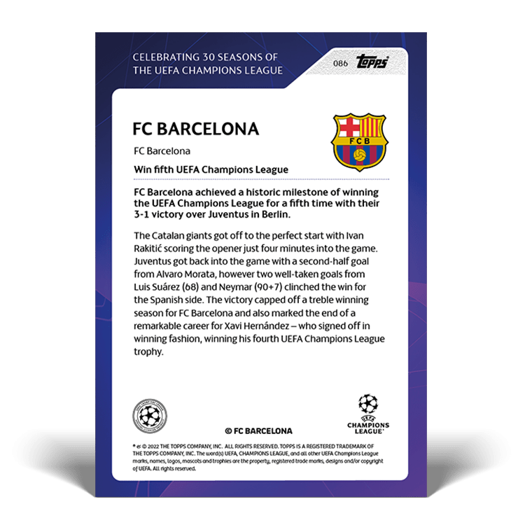 Topps célèbre les trente ans de l’UEFA Champions League avec les moments les plus emblématiques de l’histoire de la compétition.