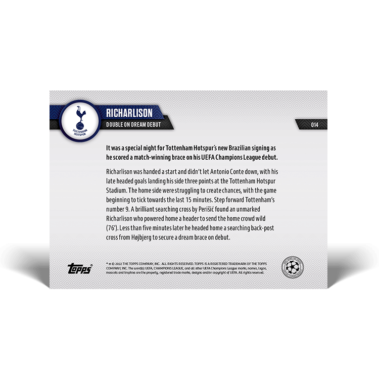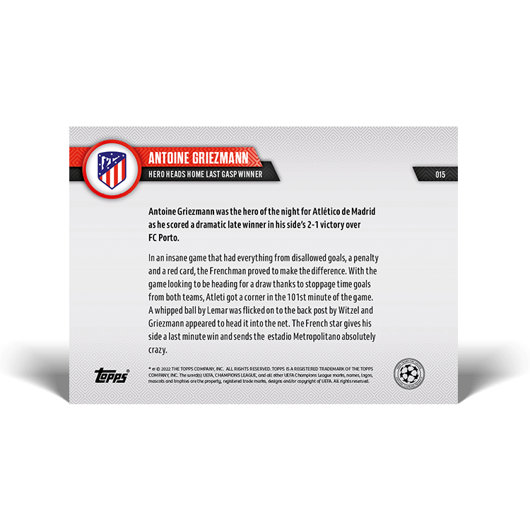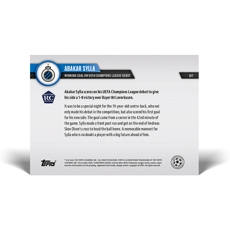 TOPPS NOW « UEFA CHAMPIONS LEAGUE 2022/23 » : visuel des cartes 013 à 017 (matchs de groupe du 07/09) Thierry K.16/09/202216/09/2022ACTUALITÉS, DÉCOUVERTE, EDITION LIMITÉE Navigation des articles PrécédentSuivant Partager : Cliquer pour imprimer(ouvre dans une nouvelle fenêtre) Imprimer Cliquer pour envoyer un lien par e-mail à un ami(ouvre dans une nouvelle fenêtre) E-mail Cliquez pour partager sur Facebook(ouvre dans une nouvelle fenêtre) Facebook Cliquer pour partager sur X(ouvre dans une nouvelle fenêtre) X J’aime chargement… Articles similaires